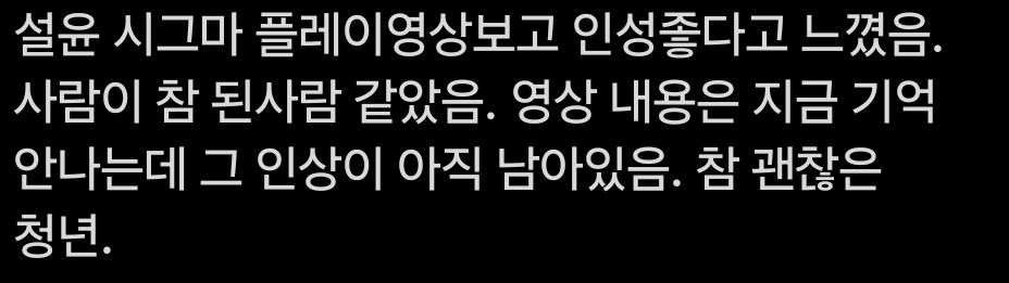 그렇기에 게이머들은 설윤씨를 잘 모르지만 시그마를 주로 한다는 이유만으로 참된 인성을 가졌구나... 라며 감탄하는중