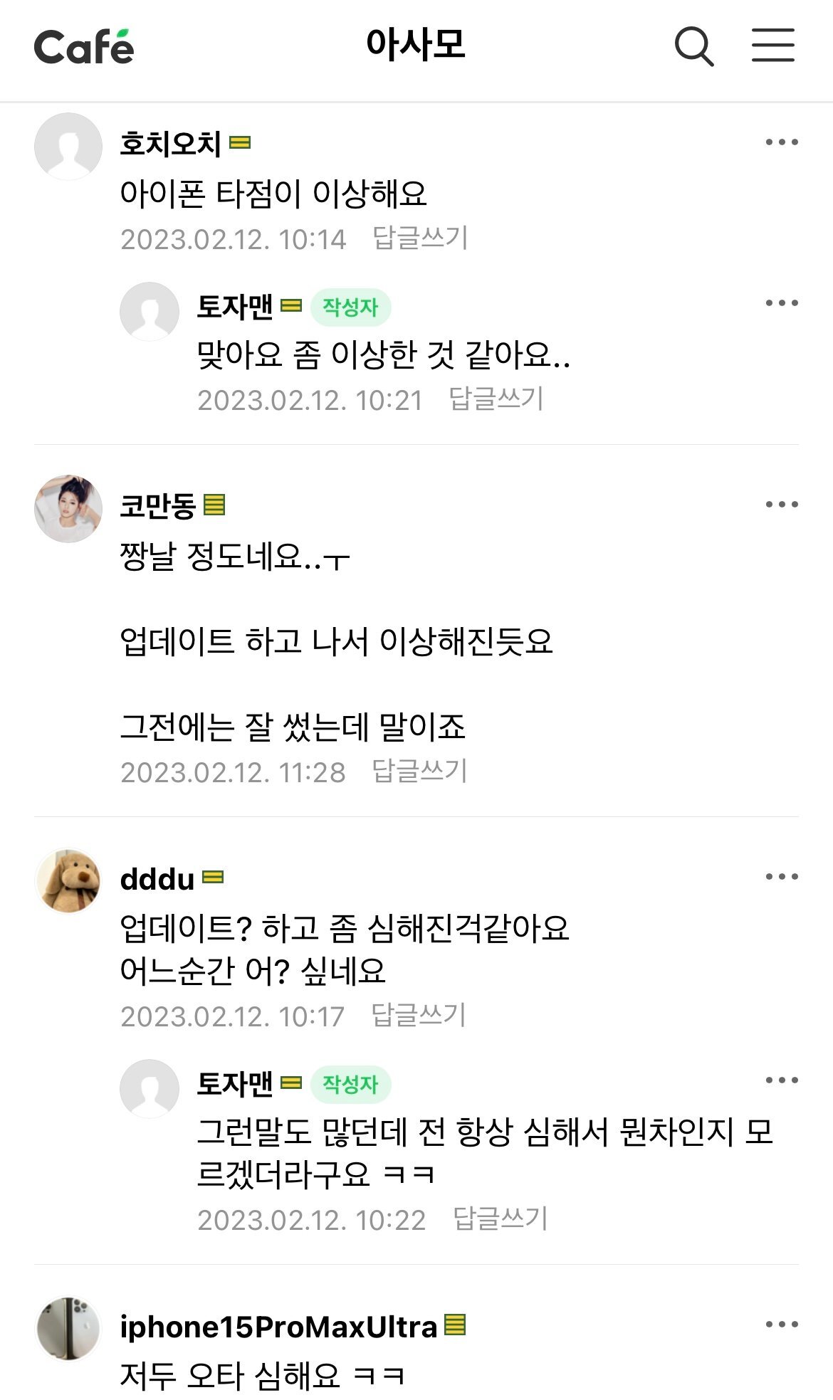 작성자에밀아자르 작성시간 25.12.12 헐 나만 그런줄? 업뎃하고나서 심해졌어 나 눈감고 치는 타자도 거의 다 제대로 쓸 정도로 잘썼는데 요즘 계속 오타만나 개빡치네 난 16프로씀