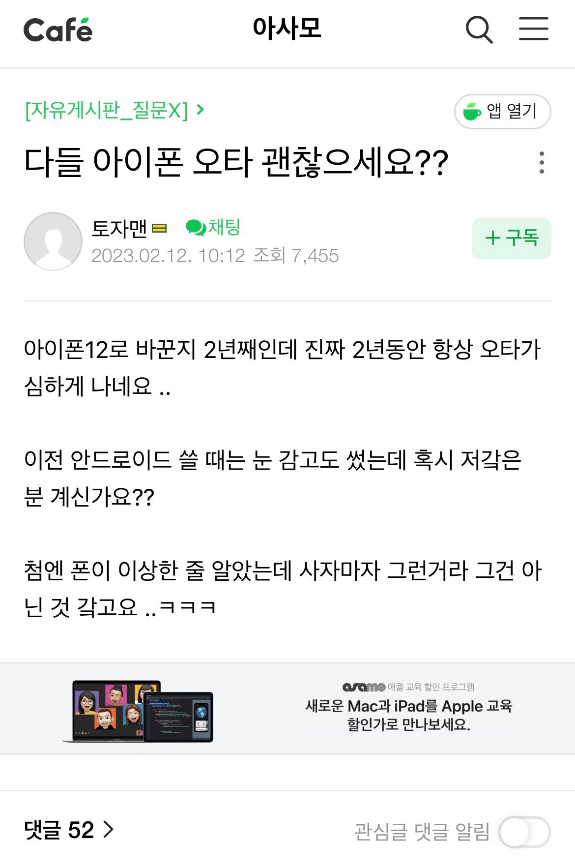 작성자북쭉에계신아름다운메리메리 작성시간 25.12.13 내 친구 아이폰인데 오타심해서 카톡읽을때 짜증남