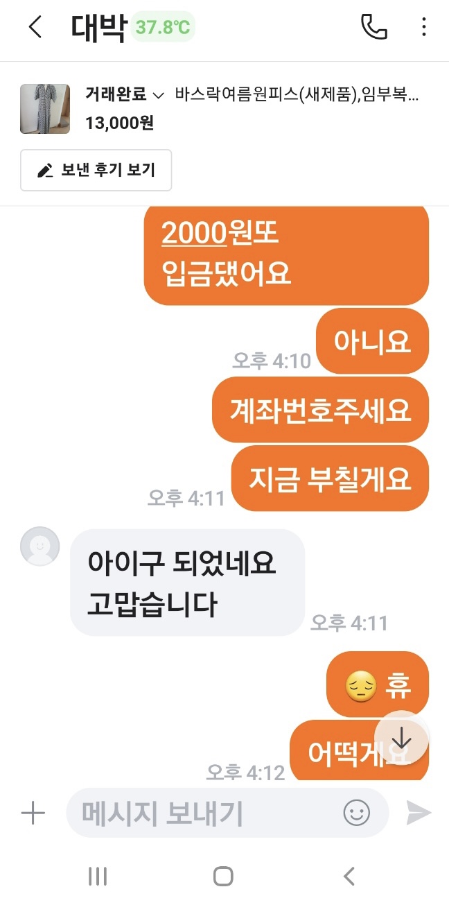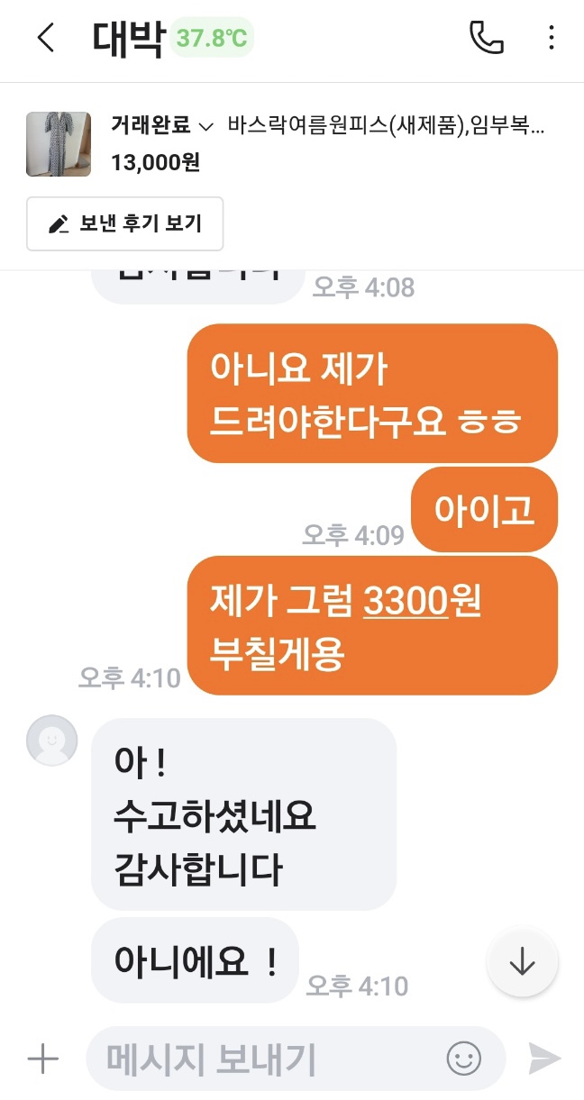 원피스값 13000+택배비 5000원...
