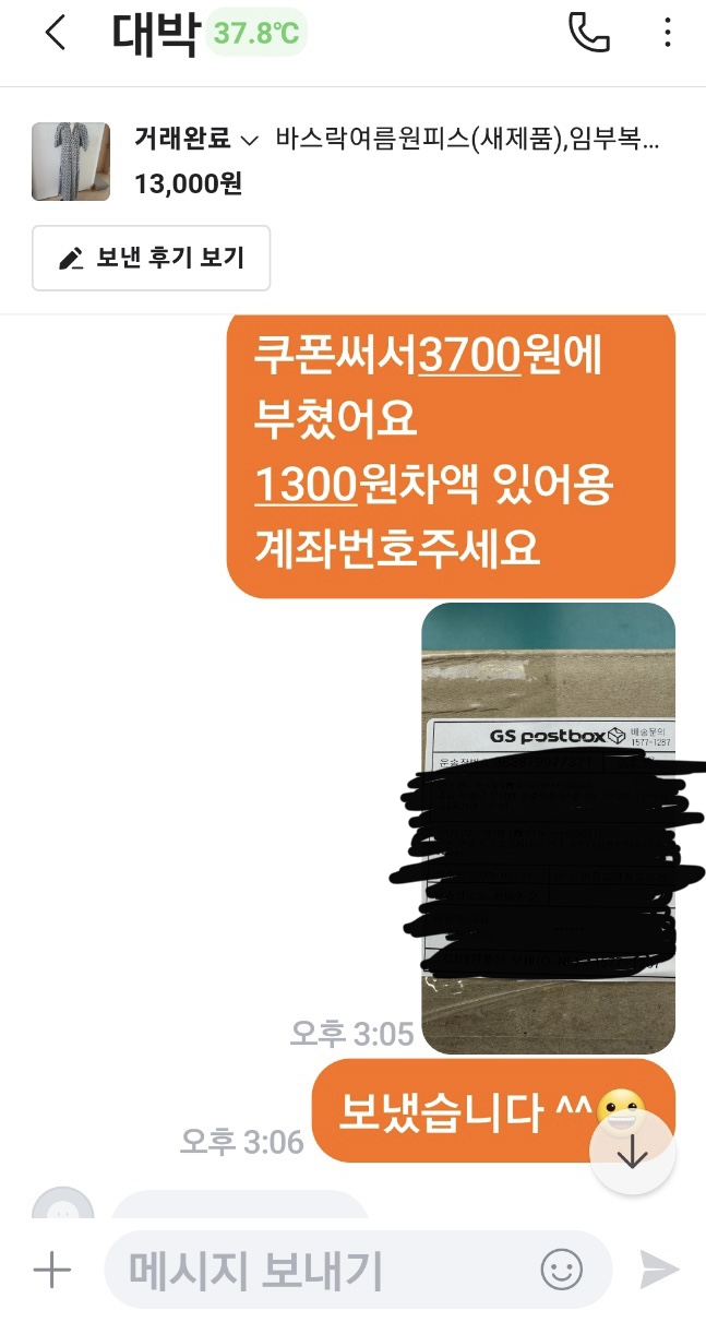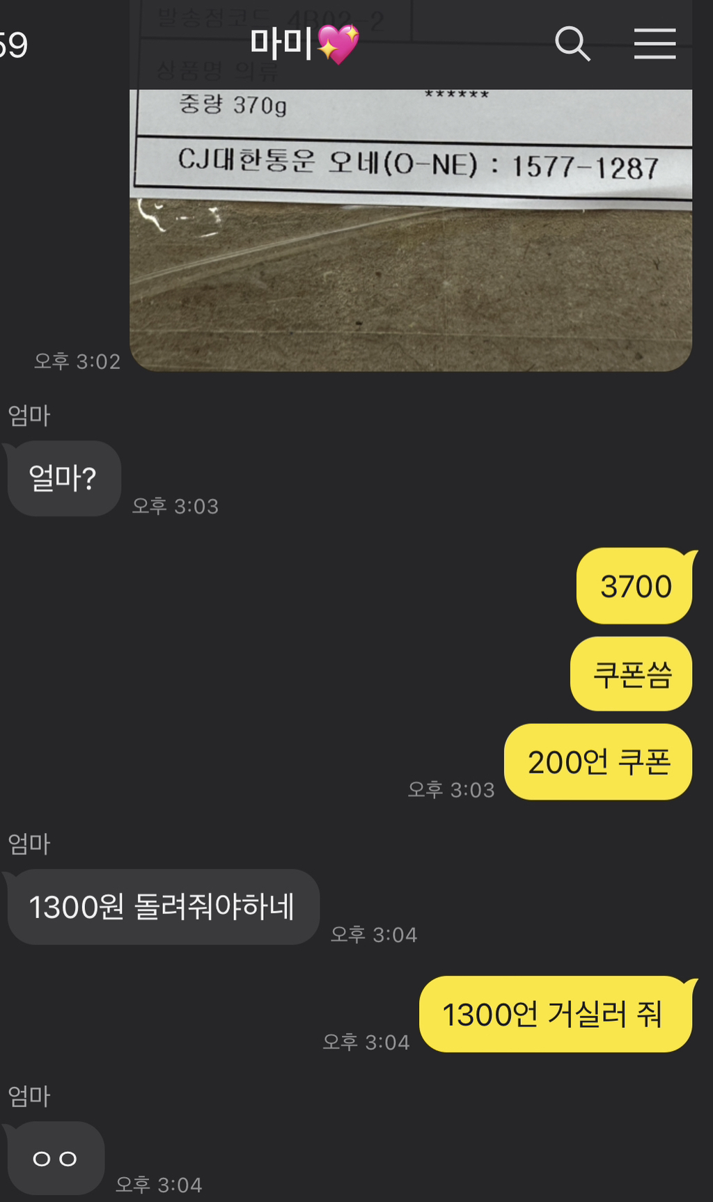 택배비는 총 3700원이 나왔고, 엄마는 차액을 돌려준다함