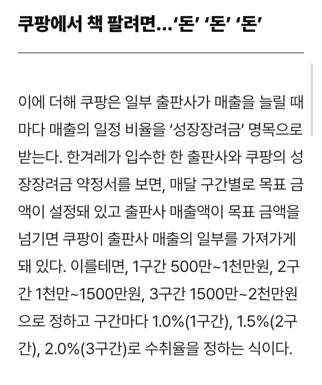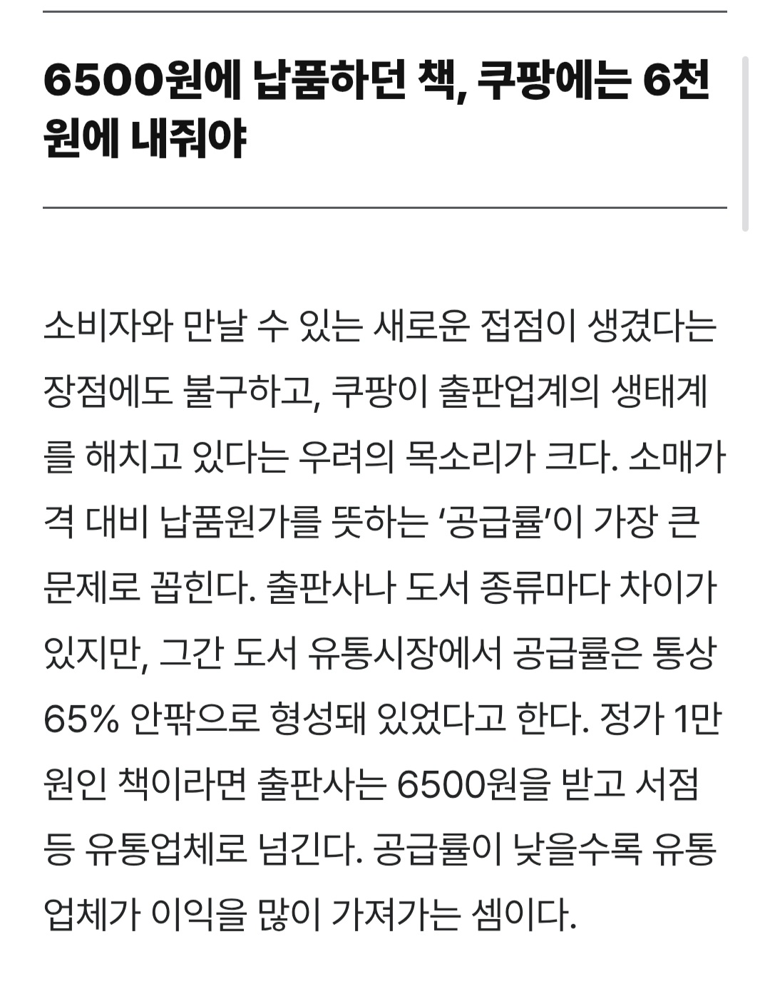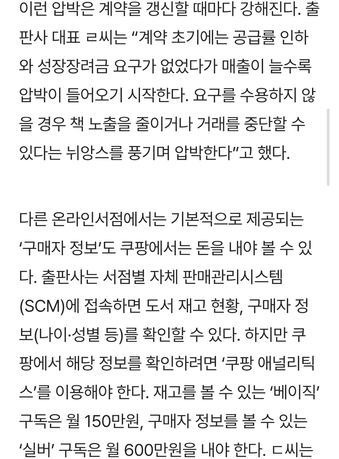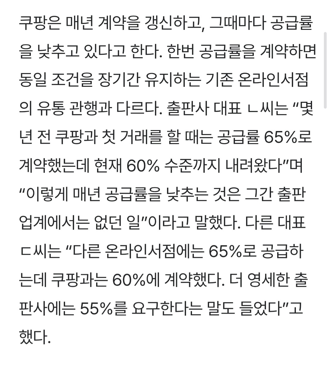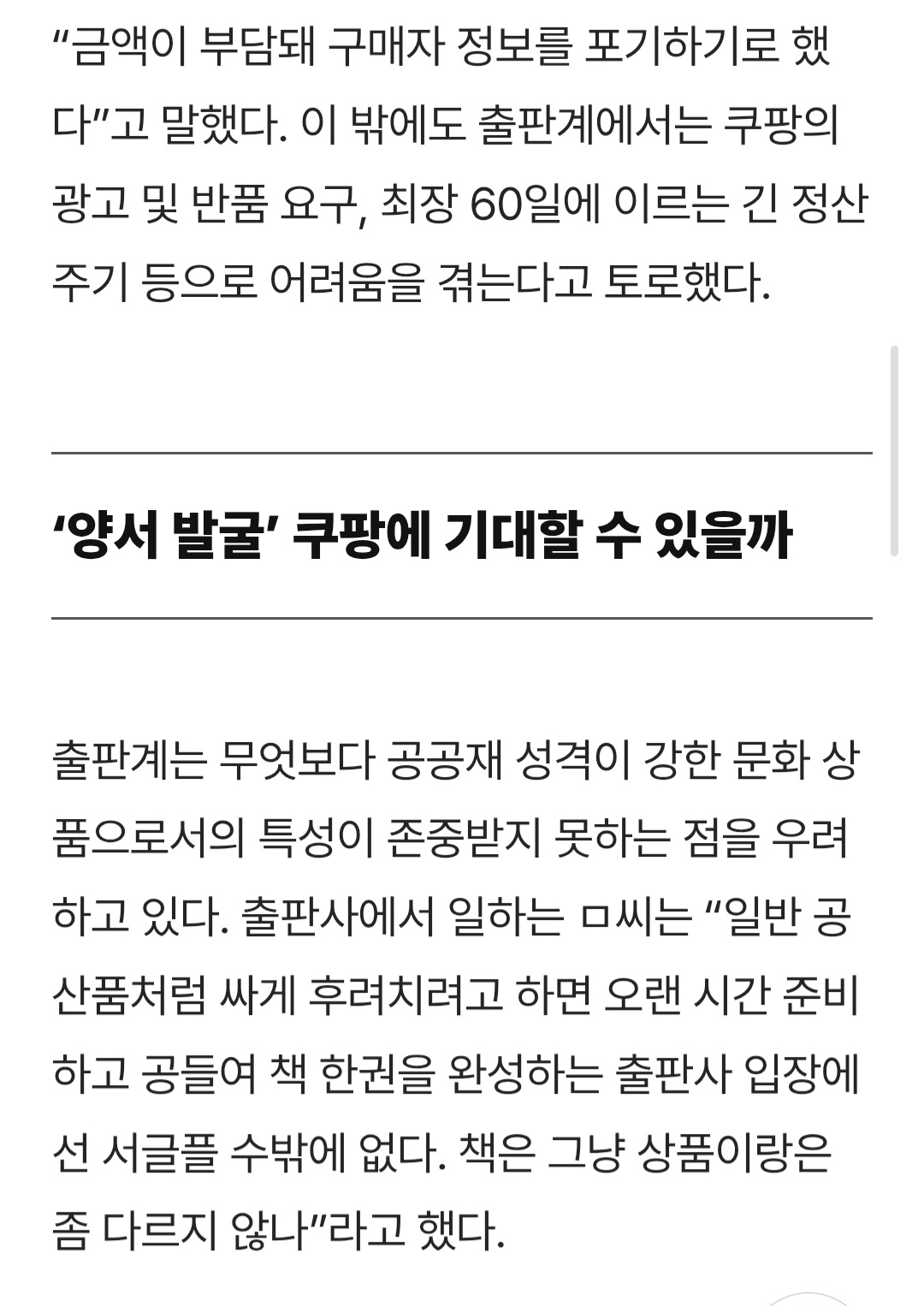 자세히 말하긴 그렇지만 9~10월쯤에 쿠팡 도서사업부 고위직 물갈이되고 그 이후로는 저 기사보다 횡포 더 심해졌어