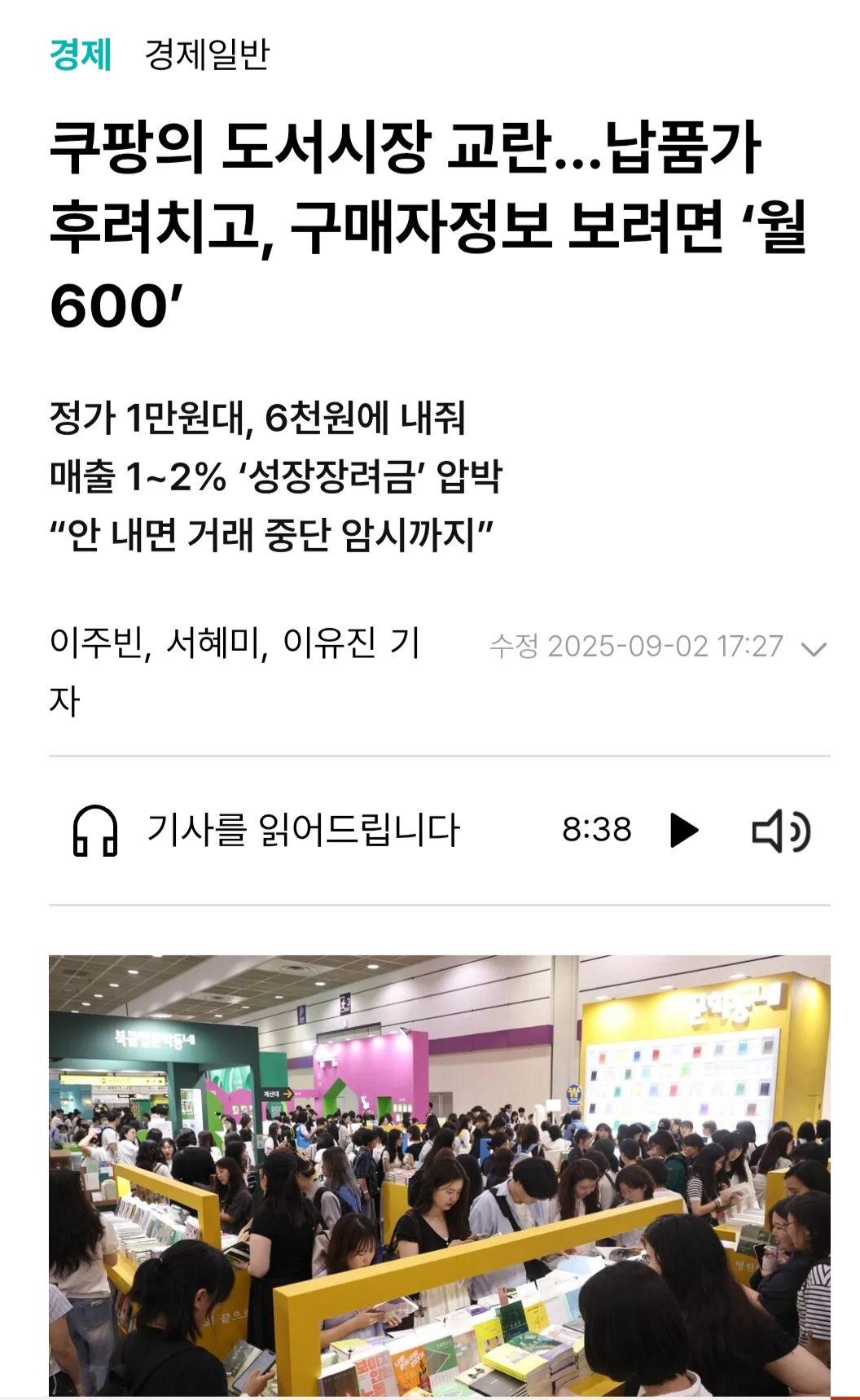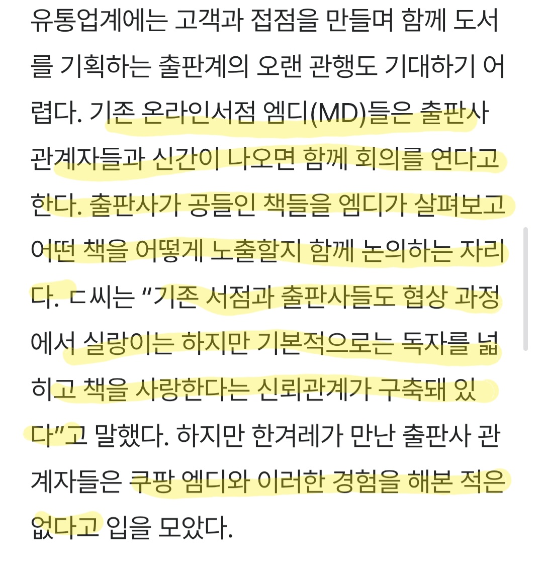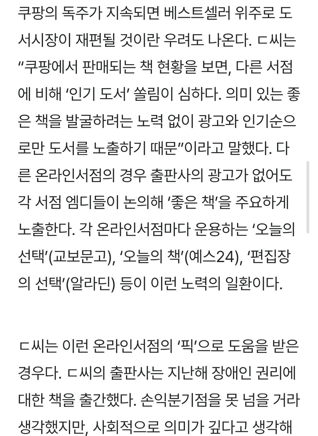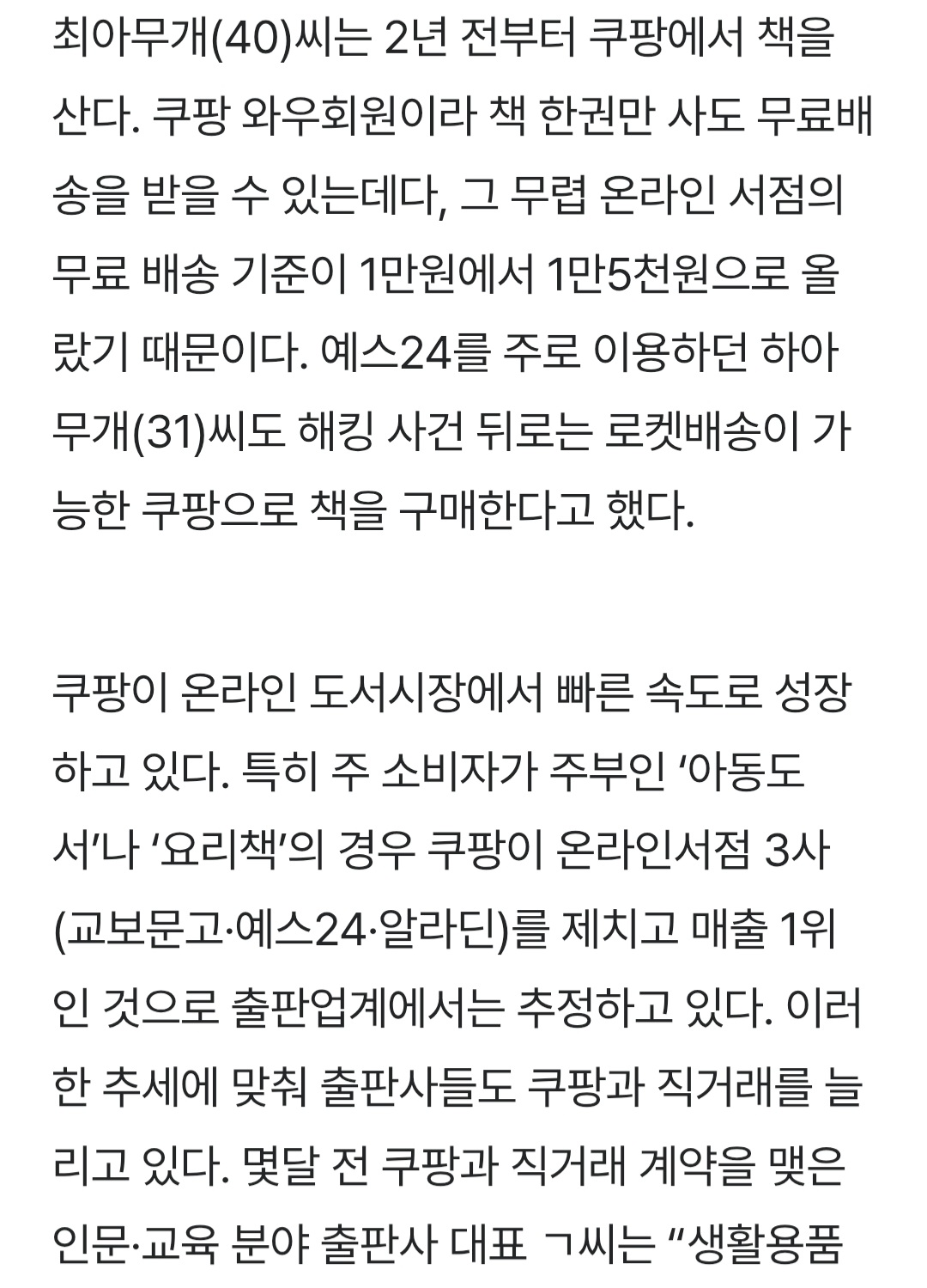 저 기사 속 출판사는 교보 다음 쿠팡이 매출 2위라고 하는데