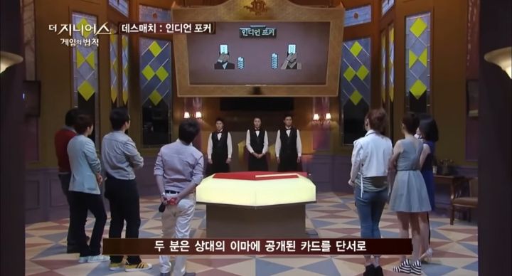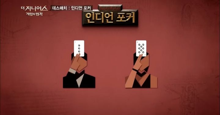 딜러가 무작위로 카드를 한장씩 주면 이마 위에 올림