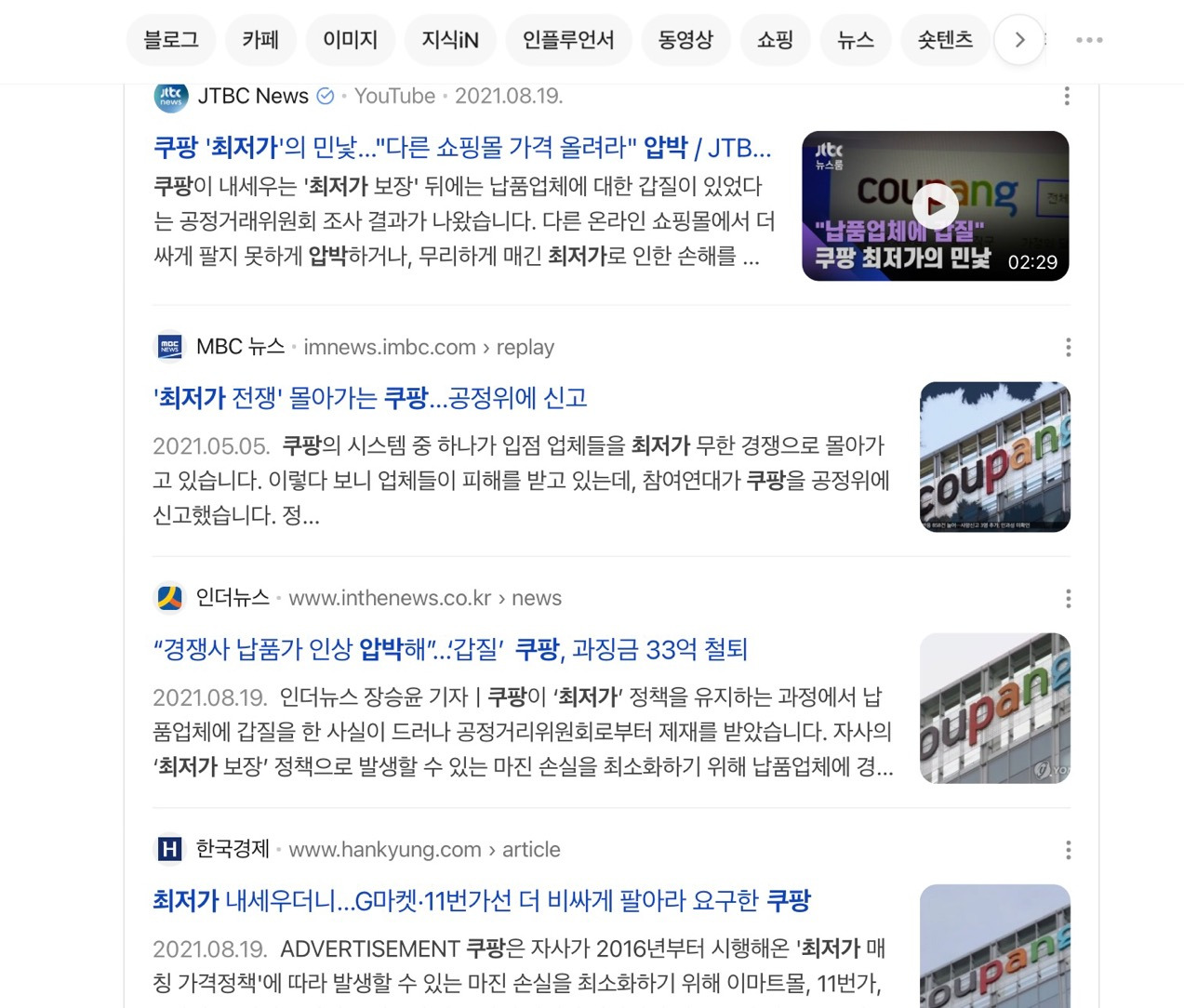 “ 같은상품이 네이버에서 더 싸게 팔린다는 것을 확인한 쿠팡이 공급처를 압박했다는 얘기입니다. ”