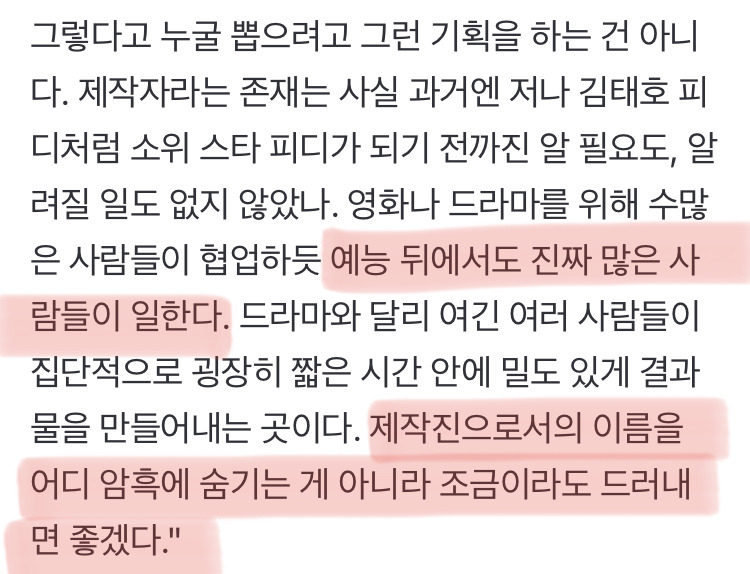 뒤에서 일하는 스텝들이 좀더 비춰지길 바래서