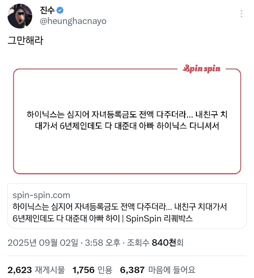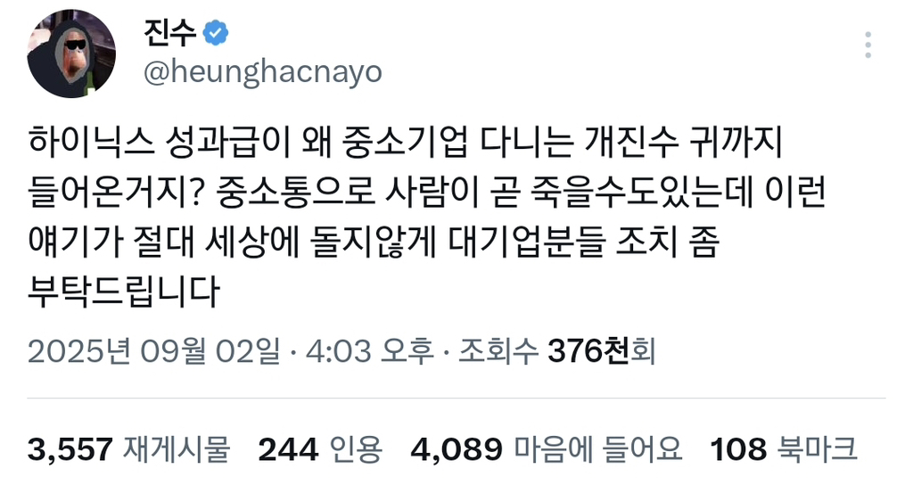 [스크랩] [흥미돋]SK하이닉스 성과급 듣고 정신승리하는 진수 작성자이것머애요|작성시간25.12.13|조회수35,456 목록 댓글 36 글자크기 작게가 글자크기 크게가 출처: 여성시대 바다 한스쿱중소통 오기 전에는 계급통 호소중이였음 다음검색 스크랩 원문 : *여성시대* 차분한 20대들의 알흠다운 공간 현재 게시글 추가 기능 열기 북마크 공유하기 신고 센터로 신고 댓글 댓글 36 댓글쓰기 답글쓰기 댓글 리스트 작성자oh okay | 작성시간 25.12.13 ㅋㅋㅋㅋㅋ진수 진짜 개웃겨 ㅋㅋㅋㅋㅋ 작성자치즈파레 | 작성시간 25.12.13 ㅌㅋㅋㅋㅋㅋㅋㅋㅋㅋㅋㅋㅋㅋㅋㅋㅋㅋㅋㅋㅋ 작성자손아귀요? | 작성시간 25.12.13 종업원샤갈ㅋㅋㅋㅋㅋㅋㅋㅋ 작성자DJ Tukutz | 작성시간 25.12.13 진수 승 작성자브람팜팜 | 작성시간 25.12.13 개웃겨 진짜ㅋㅋㅋㅋㅋㅋㅋㅋ 댓글 전체보기