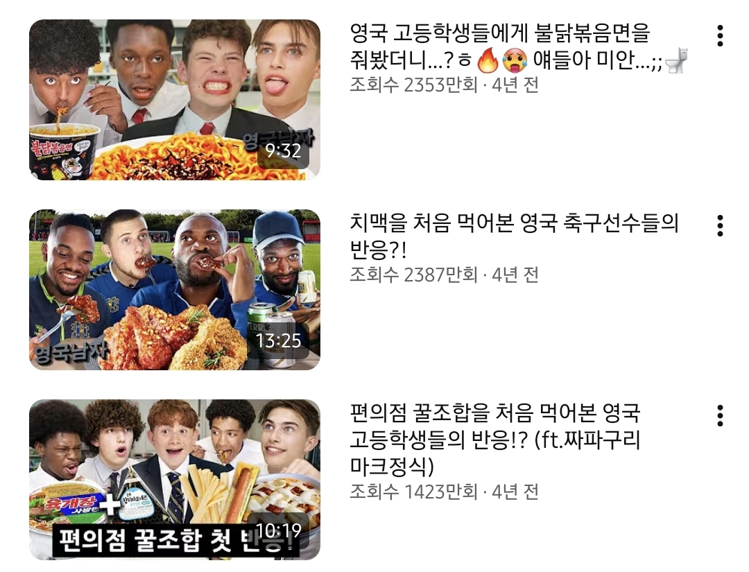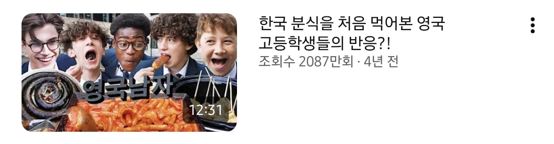 [흥미돋]유튜버 영국남자 근황..jpg 작성자스피또띠아|작성시간25.12.13|조회수56,878 목록 댓글 50 글자크기 작게가 글자크기 크게가 출처: 여성시대 스피또띠아세대교체 된 영국 고등학생들한테 한식 먹이는 중갑자기 알고리즘에 떴는데 옛날 컨텐츠 뜬 건가 싶었더니며칠 전 영상임지금은 조회수 100만 넘음4년 전에 조회수 개잘나와서 거의 시리즈처럼 나왔던 영국 고등학생들대학생 된 요즘에도 계속 출연 중임영국인+한식먹이기 조합으로 몇년 째 똑같이 운영 중인데도조회수 여전히 ㅈㄴ 잘 나와서 신기함요즘엔 또 케데헌으로 한식 인기 많아져서 다음검색 현재 게시글 추가 기능 열기 북마크 공유하기 신고 센터로 신고 댓글 댓글 50 댓글쓰기 답글쓰기 댓글 리스트 작성자족졔비 | 작성시간 25.12.14 재미 ㅈ도 없는데 누가봐주냐 ㅋ 작성자맹고스므듸 | 작성시간 25.12.14 한우물도 이렇게 파면 물이 바닥나겄다 작성자에엥에에 | 작성시간 25.12.14 세대교체됐네 ㅋㅋㅋ 작성자그래도내가낫지 | 작성시간 25.12.14 와 참 대단하다 컨텐츠 만드는 사람들도 보는 사람들도 작성자박태적 상탈감 | 작성시간 25.12.14 시즌 1에서 나온 남자애들중에 졸업하고 유튜버 된애들 있더랔ㅋㅋ 댓글 전체보기