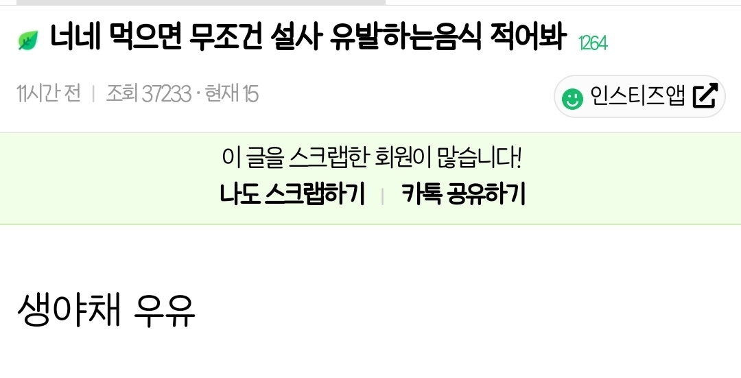[스크랩] [흥미돋]먹으면 무조건 설사유발하는 음식 적어봐 작성자p9i7y5r3w1|작성시간25.12.13|조회수36,550 목록 댓글 414 글자크기 작게가 글자크기 크게가 출처 : 여성시대 나나믿https://www.instiz.net/name/51101641?category=1&green=1안유발하는 음식을 찾기가 어려울듯ㅋㅋㅋ 다음검색 스크랩 원문 : *여성시대* 차분한 20대들의 알흠다운 공간 현재 게시글 추가 기능 열기 북마크 공유하기 신고 센터로 신고 댓글 댓글 414 댓글쓰기 답글쓰기 댓글 리스트 작성자프로무기력 | 작성시간 25.12.15 불닭... 해산물 날거 작성자toomuch | 작성시간 25.12.15 돼지고기 우유 작성자아깜짝이야 | 작성시간 25.12.15 장칼국수 작성자이거웰시토기어쩌죠 | 작성시간 25.12.15 냉면에 고기.. 작성자기아우승할때까지숨참겠습니다 | 작성시간 25.12.16 우유 댓글 전체보기