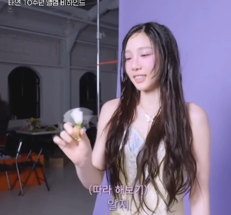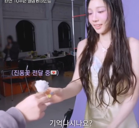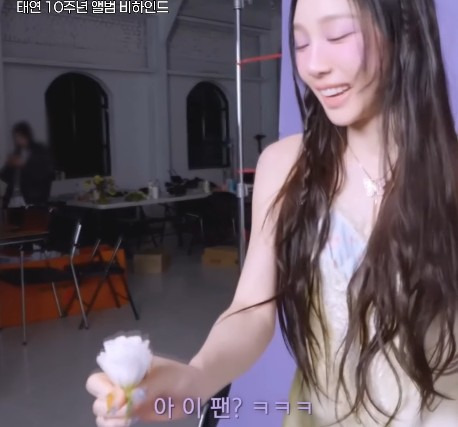 다음 팬싸 때 알아보고 선물꽃 흔들어주는 태연 초귀요미