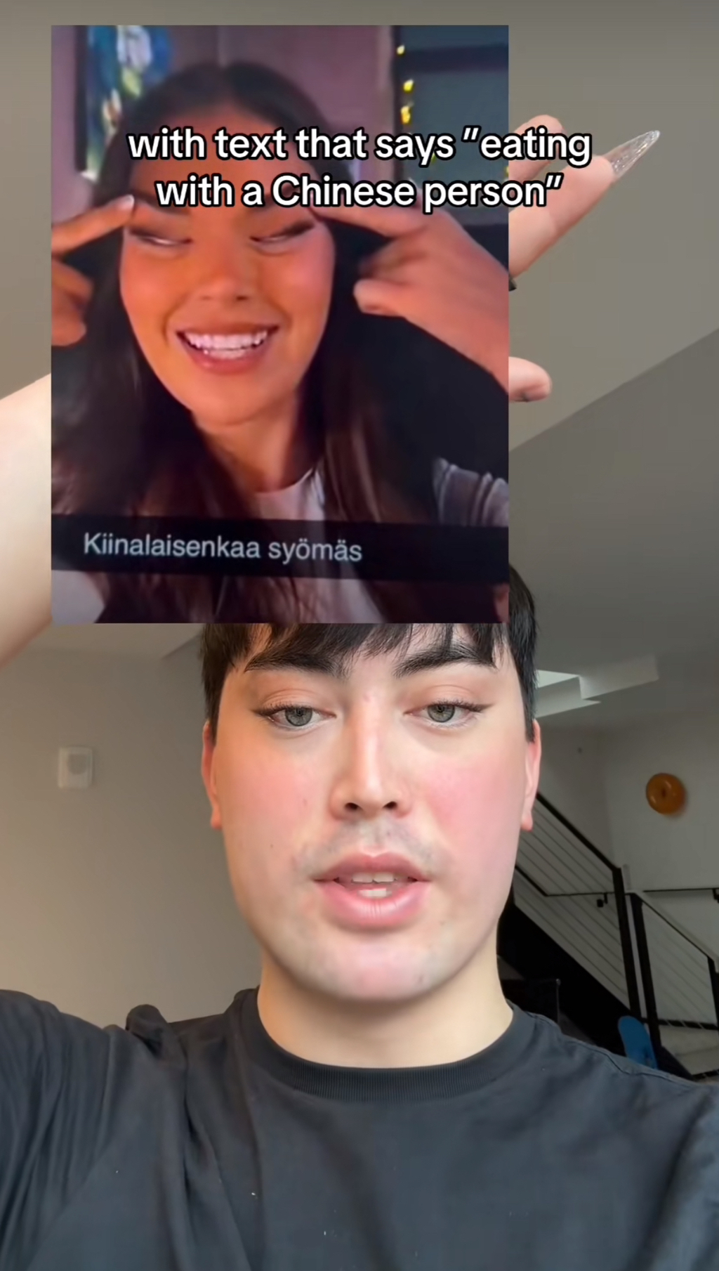 틱톡 스크롤 하다가 봤는데 올해 미스 핀란드가 “eating with a chinese person” 이라면서 눈 찢는 모션하고?
