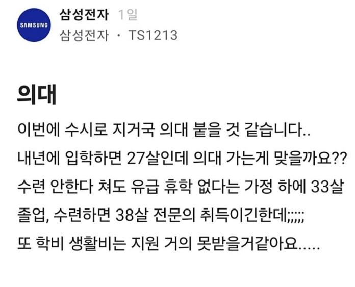 작성자qarrr 작성시간 25.12.15 삼성 40대면 짤리는데 당연히 의사 ㄱㄱ해야지