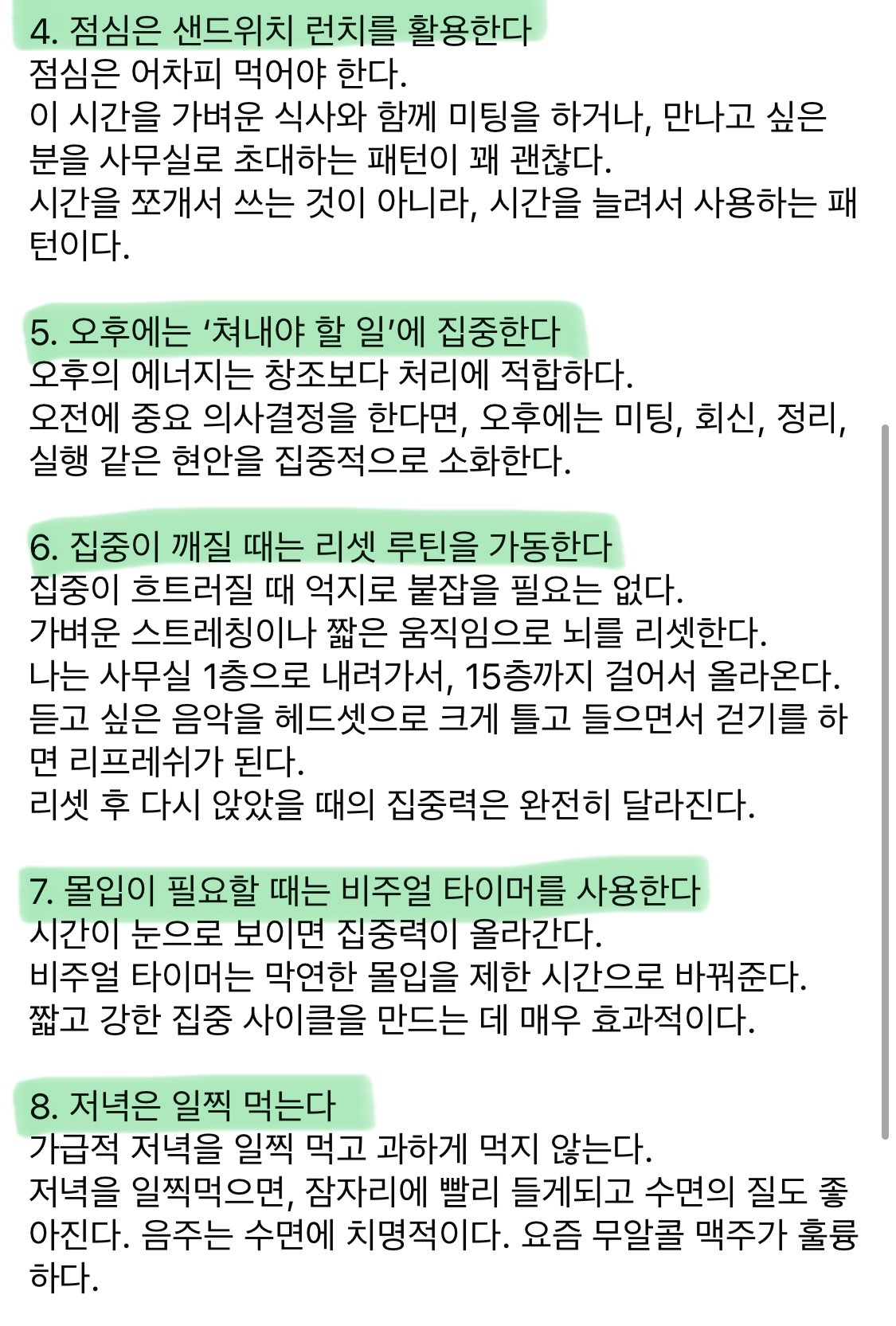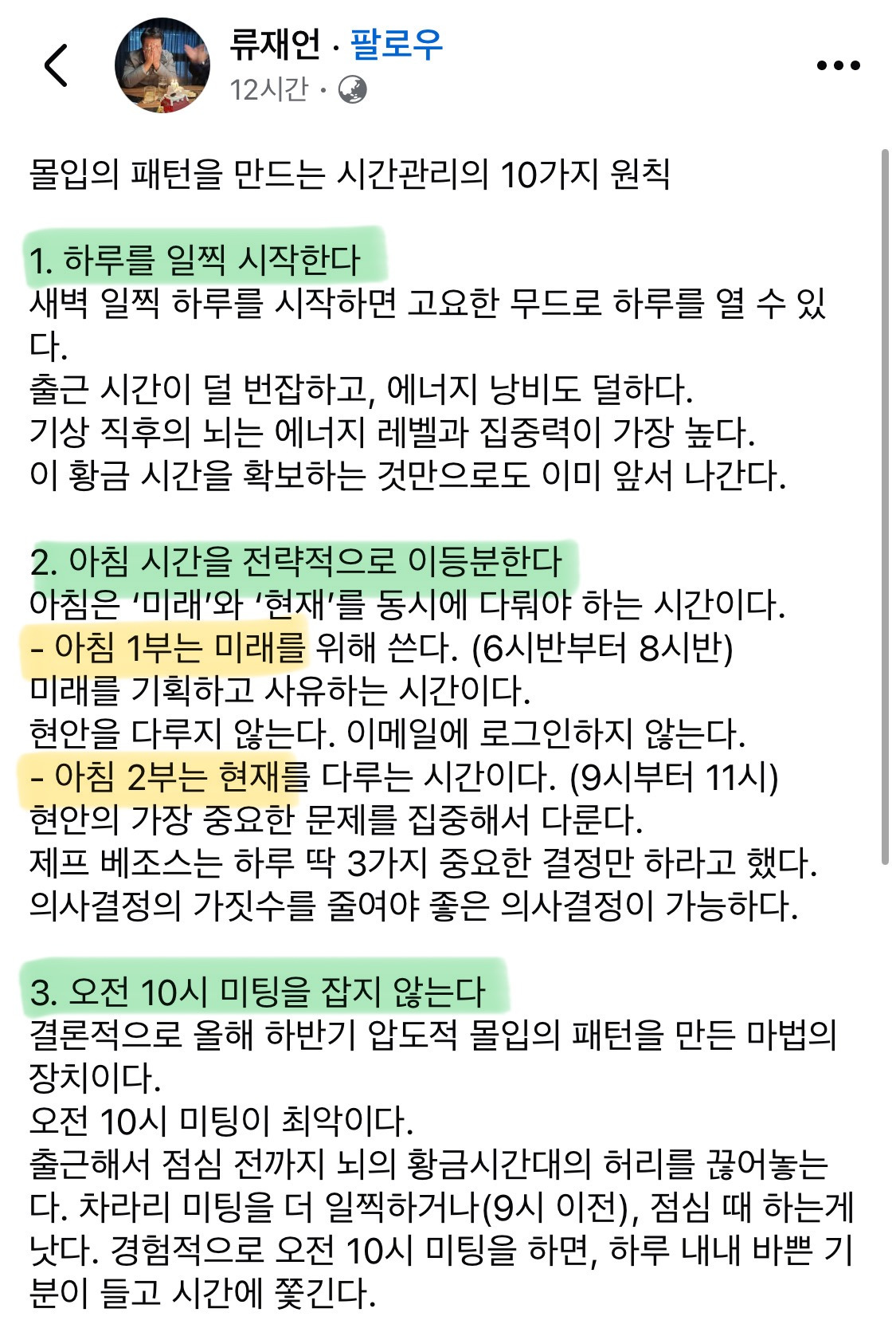 작성자핑크핑거 작성시간 25.12.14 나도 밤낮바뀌니깐 게을러지고 루틴깨져서 저거 다 공감된다 아침 일찍 일어나서 루틴대로 해야 하루 알차게 보낼수있는거 힘들어보이는데 게으르게 사는것보다 저사람처럼 저렇게 규칙적으로 살면 행복한듯