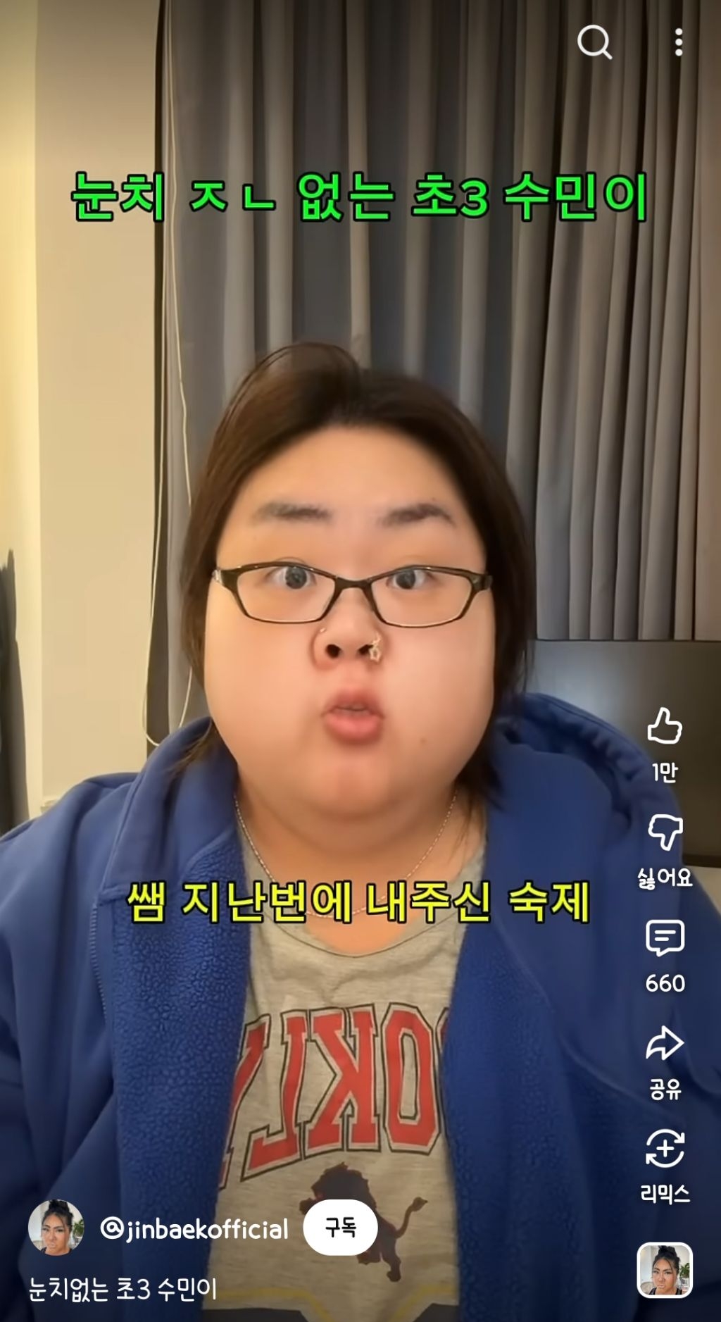 [스크랩] [흥미돋]눈치 ㅈㄴ 없는 초3 수민이.youtube 작성자Tory-|작성시간25.12.14|조회수10,854 목록 댓글 16 글자크기 작게가 글자크기 크게가 출처: https://youtube.com/shorts/vcLeWI43EX0?si=38Q6KxSnWRrXMyc5 다음검색 스크랩 원문 : *여성시대* 차분한 20대들의 알흠다운 공간 현재 게시글 추가 기능 열기 북마크 공유하기 신고 센터로 신고 댓글 댓글 16 댓글쓰기 답글쓰기 댓글 리스트 작성자스님불교재밌나요 | 작성시간 25.12.14 잘한다 진짜... 작성자쟤니제니쟨 | 작성시간 25.12.14 ai야?? 작성자수확자 | 작성시간 25.12.14 와 죄송한데 진짜 싫네요 ㅋㅋㅋㅋㅋㅋㅋㅋ ㅠㅠ 작성자못난이당근 | 작성시간 25.12.14 헐 폭유제이미 채널이네?? 부캐가 맻개고 작성자다만세만세 | 작성시간 25.12.14 개잘해 진짜 ㅋㅋㅋㅋㅋ 댓글 전체보기