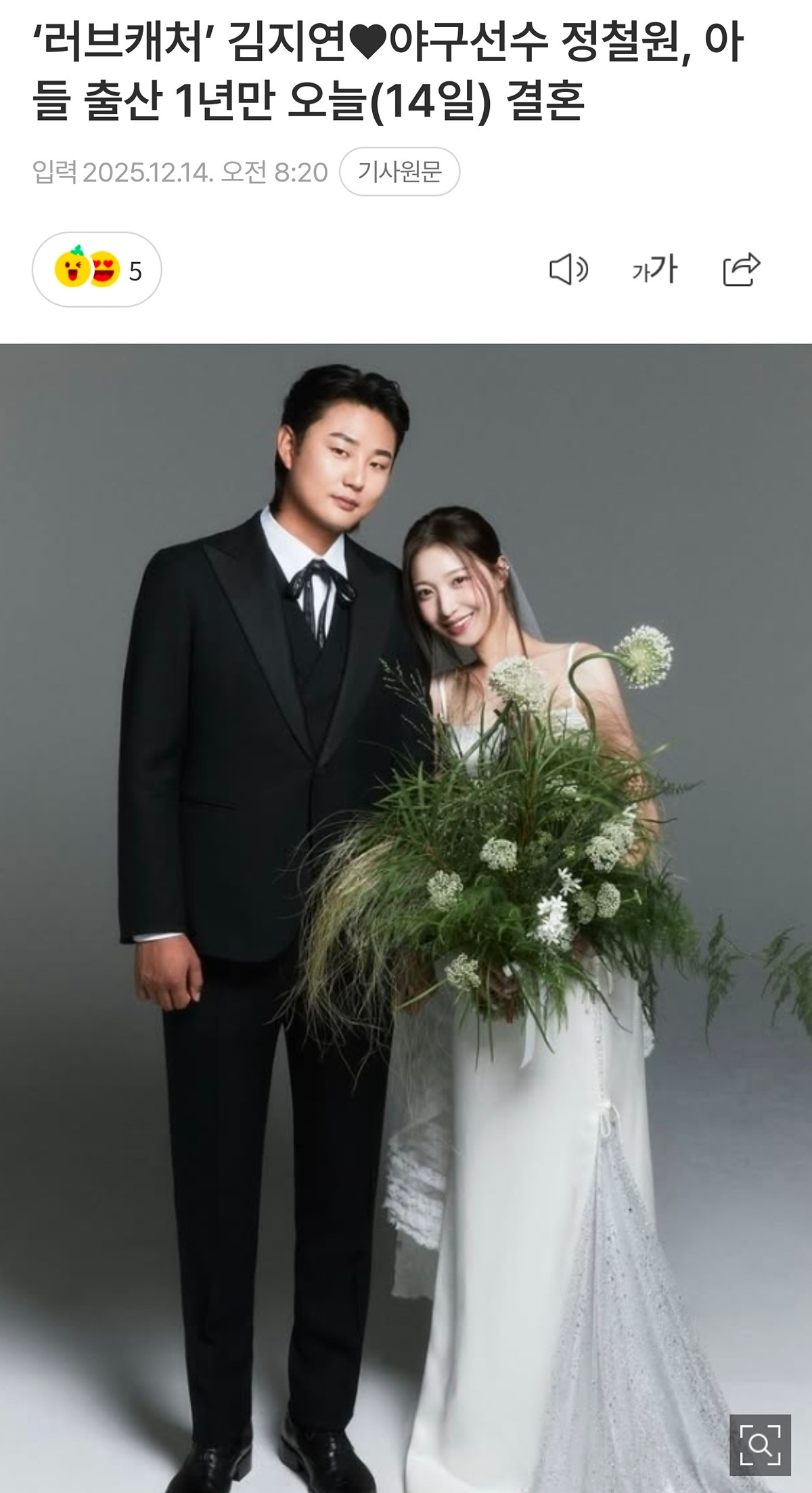 오늘 결혼 한 롯데 야구선수 정철원과 김지연