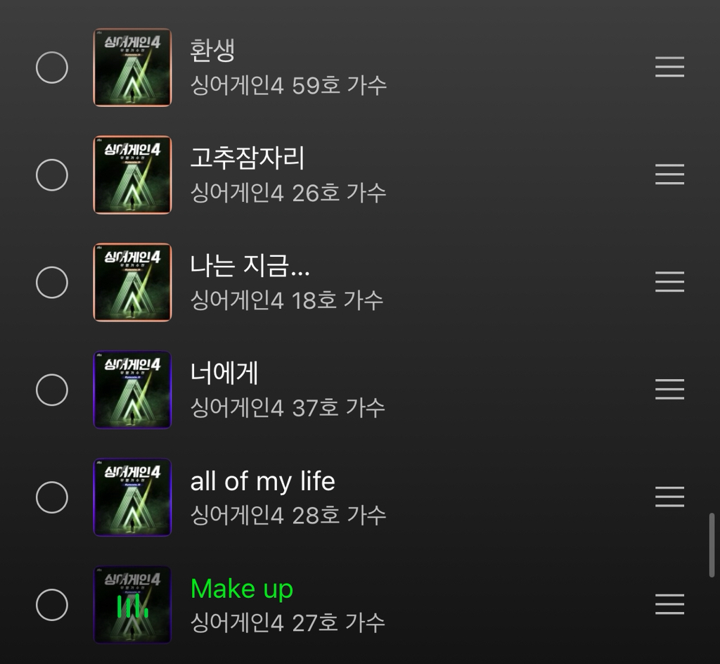 경연곡들은 음원으로도 나왔으니