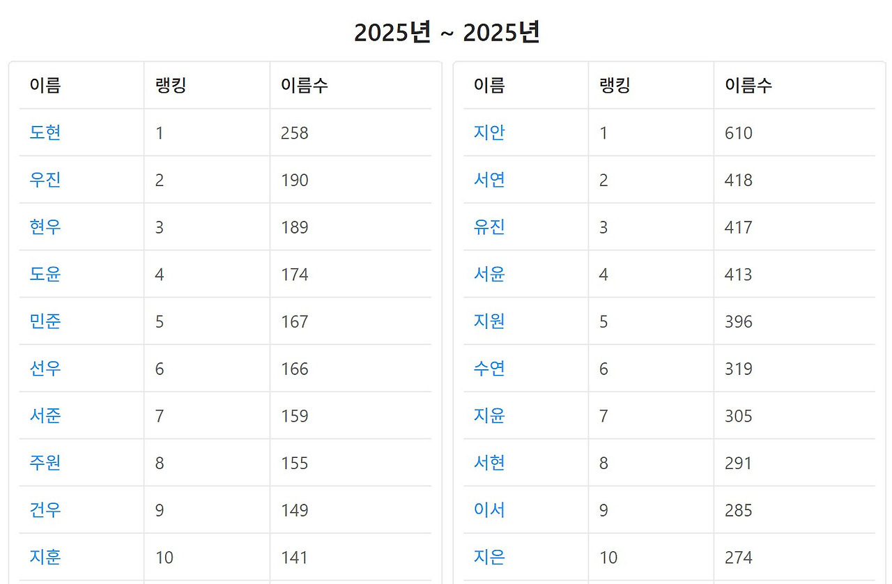 작성자젖소 작성시간 25.12.15 내가 느끼기에 이쁜이름은 남한테도 이쁜가봐 ㅋㅋㅋㅋㅋ 지안 진짜 탐났는데 .... 1위넼ㅋㅋㅋ