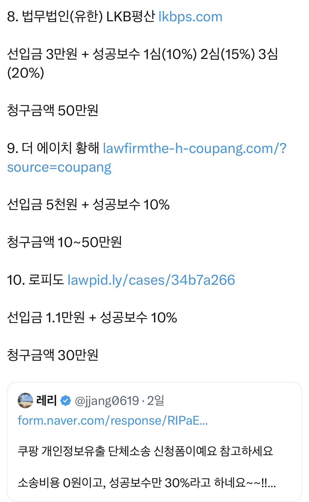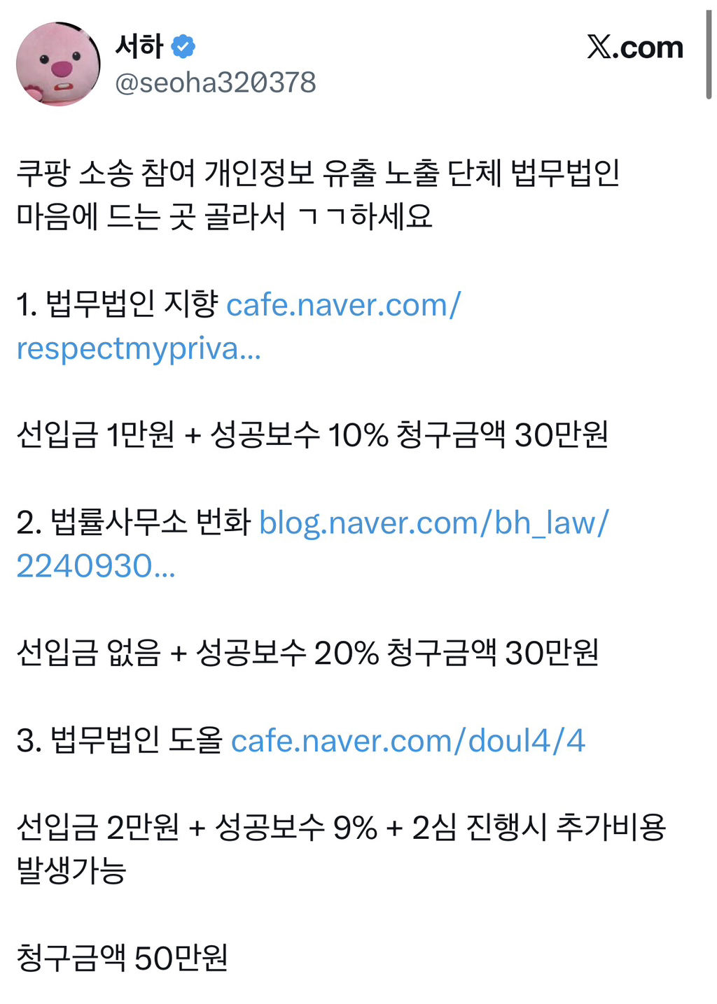 쿠팡 소송 참여 개인정보 유출 노출 단체 법무법인