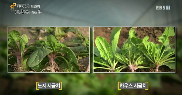 노지 시금치밭 옆에 하우스에서 자라는 시금치가 있다고함