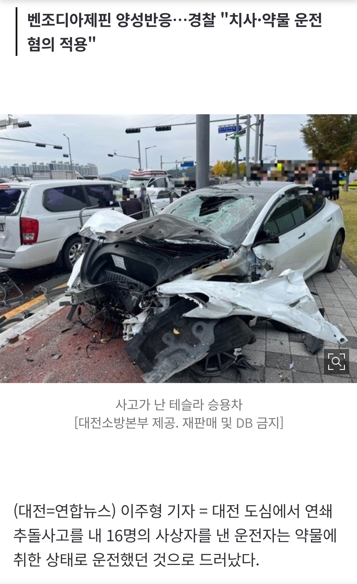 A씨는 경찰조사에서 평소 뇌전증을 앓으면서 사고 당일에도 관련 약을 먹었다고 진술했는데 국립과학수사연구원 감정 결과 A씨의 혈액에서는 벤조디아제핀 양성 반응이 나타났다.