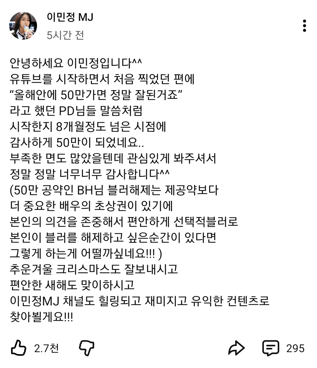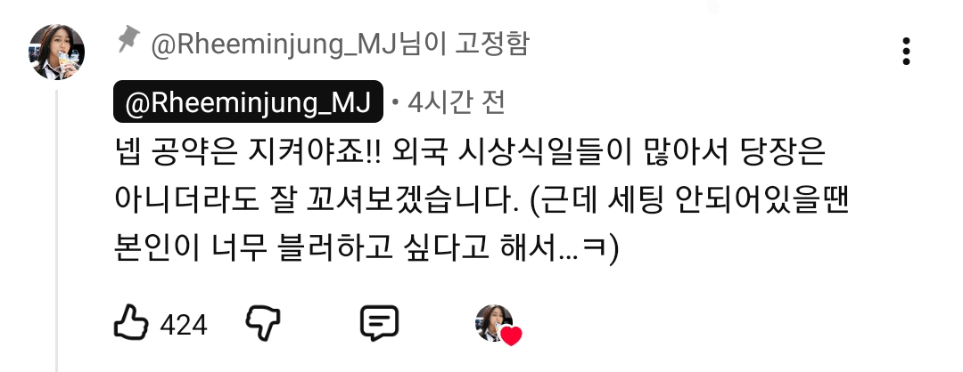 [흥미돋]50만 구독 공약 안 지켜서 반응 안 좋은 이민정 유튜브 작성자Sunmoonstar02|작성시간25.12.15|조회수189,280 목록 댓글 320 글자크기 작게가 글자크기 크게가 출처: https://www.dmitory.com/issue/392703884이슈/유머 - 50만 구독 공약 안 지켜서 반응 안 좋은 이민정 유튜브익명 정보 커뮤니티 사이트www.dmitory.com유튜브 초창기에 50만 되면 이병헌 블러 해제한다고 했음 다음검색 현재 게시글 추가 기능 열기 북마크 공유하기 신고 센터로 신고 댓글 댓글 320 댓글쓰기 답글쓰기 댓글 리스트 작성자맥북프로틴 | 작성시간 25.12.28 진짜 좀 .. 나랑은 안 맞음 작성자둥근해미칞거또떧내칷 | 작성시간 25.12.28 바람 눈감아준것부터 잡고사는거랑은 동떨어진거아님? 하나도안놀랍다 작성자우유사탕 | 작성시간 25.12.28 그러를그러세요 작성자belvv | 작성시간 25.12.28 ㅋㅋㅋ애초에 안봤지만 더더욱볼일없을듯 작성자나의해방 | 작성시간 25.12.28 잡고 사는줄 알았는데 아니였네 댓글 전체보기