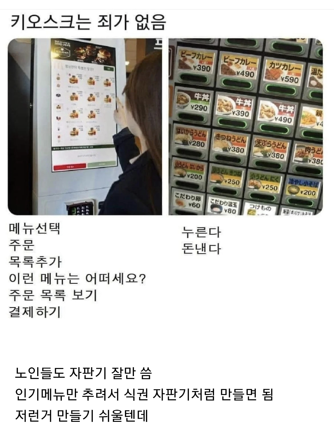 [스크랩] [흥미돋]디지털약자 키오스크는 이렇게 만들어야 함.jpg 작성자Rooose|작성시간25.12.15|조회수55,474 목록 댓글 27 글자크기 작게가 글자크기 크게가 다음검색 스크랩 원문 : 쭉빵카페 현재 게시글 추가 기능 열기 북마크 공유하기 신고 센터로 신고 댓글 댓글 27 댓글쓰기 답글쓰기 댓글 리스트 작성자진있다 멋짜 | 작성시간 25.12.15 커피자판기는 잘만쓰잖아 그거 처럼 간단히 안되나 작성자제빵시험에 나오고 싶은 호떡 | 작성시간 25.12.16 ”이런메뉴 어떠세요?“ 좀 없애라 ㅅㅂ 작성자빛나핑 | 작성시간 25.12.16 메뉴추천 진짜 하지마라 작성자파란옷이젤다 | 작성시간 25.12.16 와 ㄹㅇ 작성자호로로로롱이니 | 작성시간 25.12.16 잘 내려가지지도 않음 ㅅㅂ 스크롤 댓글 전체보기