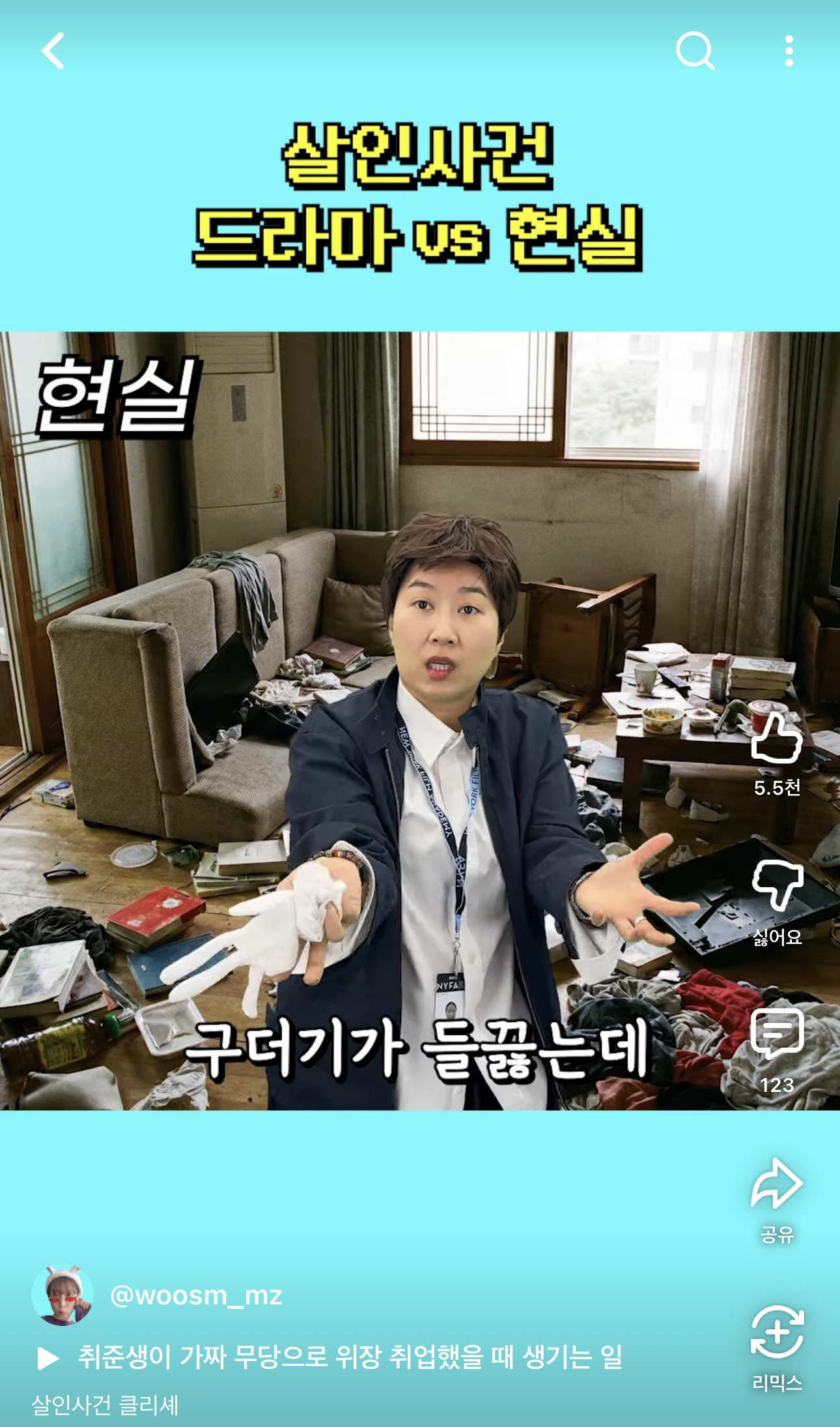 [기타]엄은향이 올린 살아있는 상태에서 피부가 괴사되고 전신에 구더기가 전신에 퍼진 상태로 방치되다 숨졌는데 같이 살면서 몰랐다는 남편 사건 작성자바나나스플릿구슬|작성시간25.12.15|조회수72,469 목록 댓글 68 글자크기 작게가 글자크기 크게가 출처: https://youtube.com/shorts/ie5hfCeCFqs?si=UG5d0mmQSymppiGyhttps://naver.me/GA8AM9td“산 사람이 썩었다” 구더기 사망 부사관 아내…폭행 피해 정황온몸에 구더기가 들끓을 때까지 방치됐다가 숨진 육군 부사관의 아내 A씨가 생전 폭행 피해를 입었을 가능성이 제기됐다. 13일 SBS ‘그것이 알고 싶다’에 따르면 강남규 응급의학과 전문의는 An.news.naver.com 다음검색 현재 게시글 추가 기능 열기 북마크 공유하기 신고 센터로 신고 댓글 댓글 68 댓글쓰기 답글쓰기 댓글 리스트 답댓글 작성자황금색 | 작성시간 25.12.19 33 작성자헌트릭스 조이 | 작성시간 25.12.16 진짜 엄은향이 나한테는 최고의 피디다 걍 작성자춭아아애 | 작성시간 25.12.16 엄은향 멋지다 작성자출근퇴근퇴사백수면접백수출근퇴근 | 작성시간 25.12.17 진짜 여자는 남친 시켜서 죽여도 천하의 잔인한 살인자 취급인데 저렇게 오랜 시간 잔인하게 죽여왔는데도 그저 조용 작성자172939 | 작성시간 25.12.18 조회수 올려 댓글 전체보기