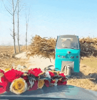 중국 어느 시골 결혼식 차량 행렬을 만난 농부