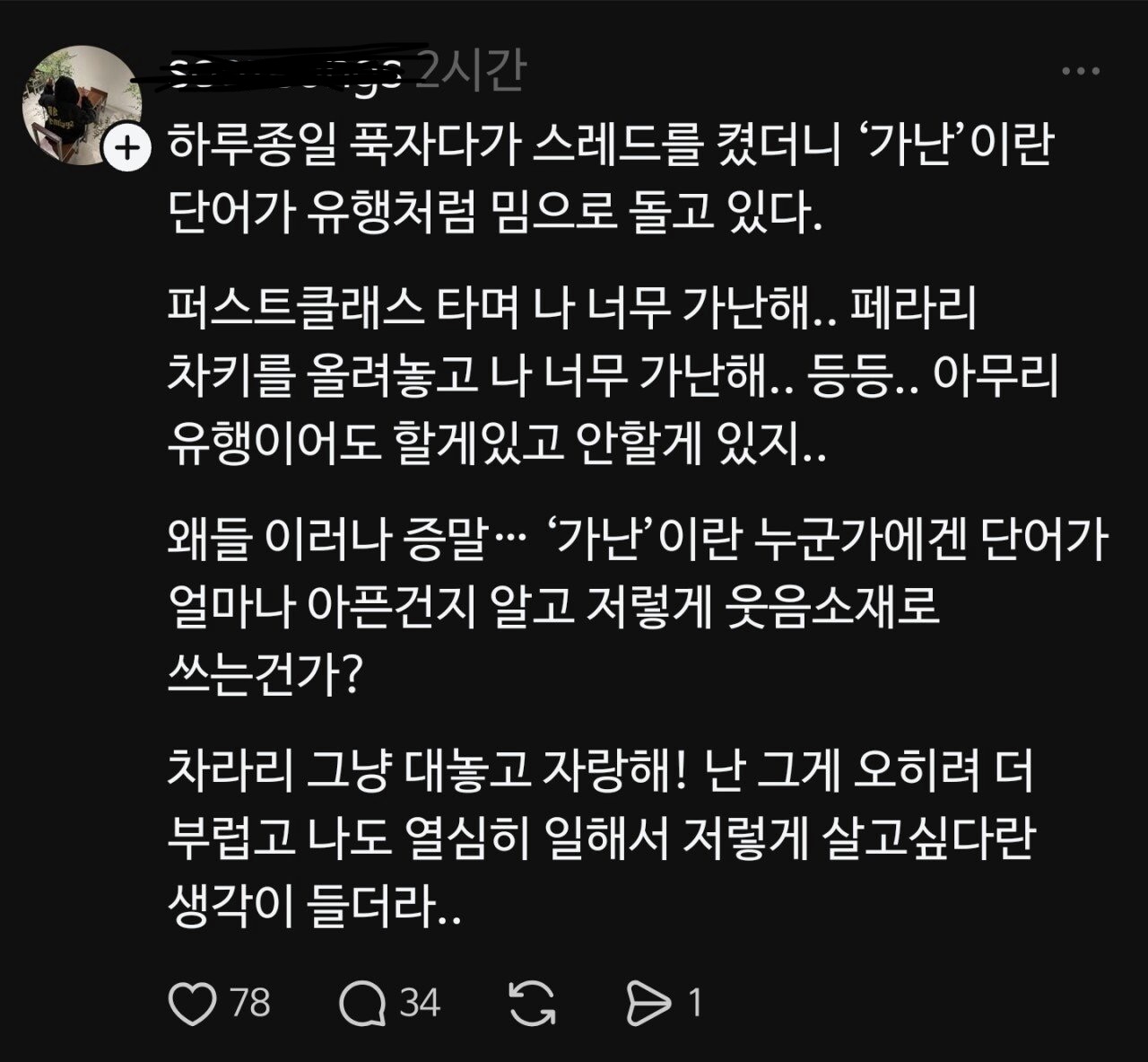 [흥미돋]스레드에서 유행중이라는 가난챌린지.... 작성자Sunmoonstar02|작성시간25.12.21|조회수187,907 목록 댓글 391 글자크기 작게가 글자크기 크게가 출처: https://www.dmitory.com/issue/393490454이슈/유머 - 스레드에서 유행중이라는 가난챌린지....익명 정보 커뮤니티 사이트www.dmitory.com 다음검색 현재 게시글 추가 기능 열기 북마크 공유하기 신고 센터로 신고 댓글 댓글 391 댓글쓰기 답글쓰기 댓글 리스트 작성자짱럭키핑 | 작성시간 25.12.25 왜저래ㅗ 작성자꽃분이귀여워 | 작성시간 25.12.26 저런애들 특 진짜 있는 사람 앞에서는 빌빌김 ㅋㅋ 작성자우주고양이 | 작성시간 25.12.27 스레드를 안하는 이유 작성자마토리 | 작성시간 25.12.27 모야 작성자황금색 | 작성시간 25.12.28 스레드 심각하네 댓글 전체보기