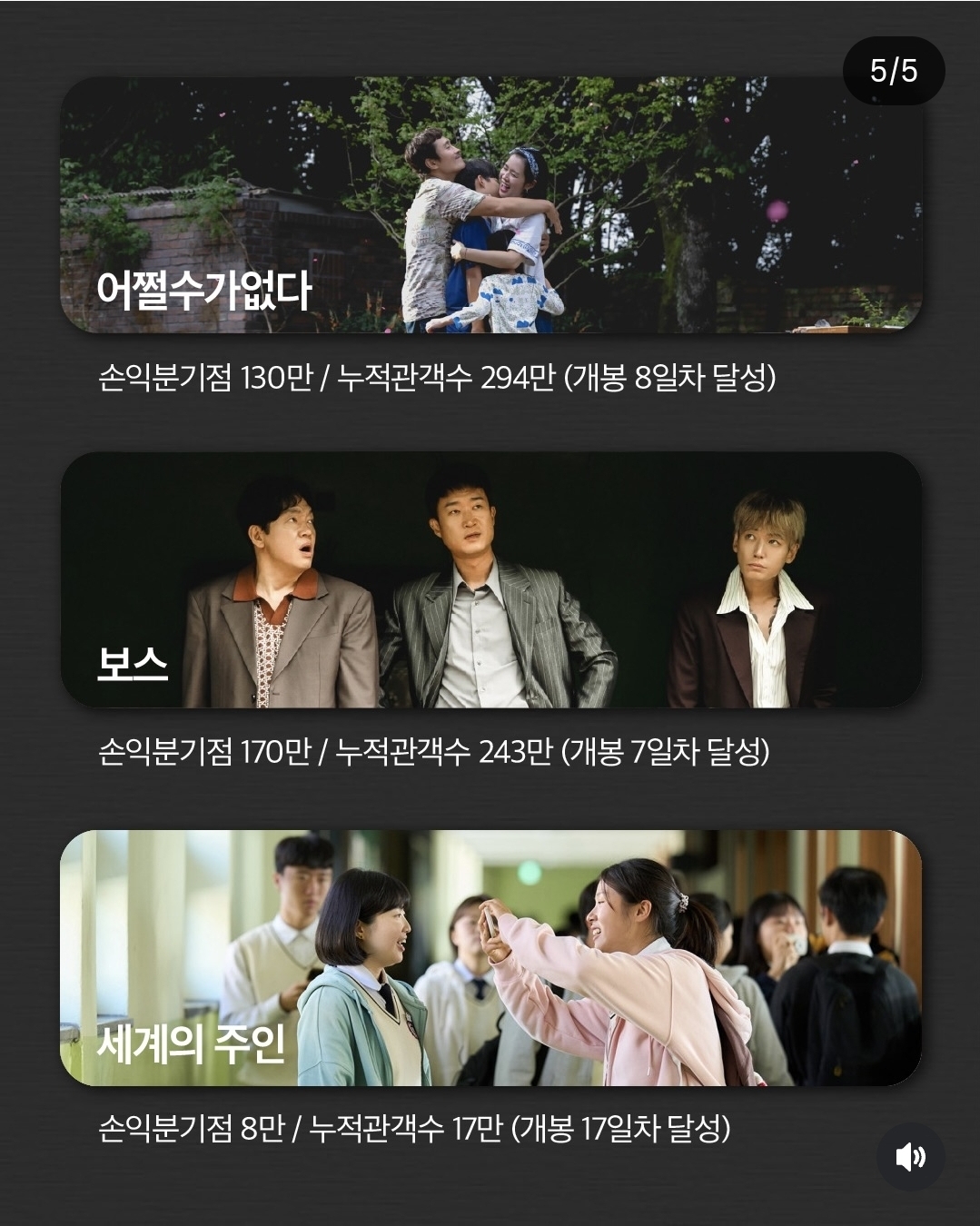 *여성시대* 차분한 20대들의 알흠다운 공간 [흥미돋]2025년 개봉한 영화 중 손익분기점 돌파한 영화들 작성시간25.12.21|조회수8,355 목록 댓글 8 글자크기 작게가 글자크기 크게가 출처: https://www.instagram.com/p/DSfAb0tE_Lh/ 다음검색 현재 게시글 추가 기능 열기 북마크 공유하기 신고 센터로 신고 댓글 8 댓글 리스트 작성시간 25.12.21 우와 작성시간 25.12.21 와우 작성시간 25.12.21 생각보다 많네..? 올해 싹다 망한줄.. 작성시간 25.12.22 검은 수녀들 재밌었어 해석보면 더재밌어 작성시간 25.12.22 보스 재밌나...? 카페 방문해 더 많은 댓글 만나기!