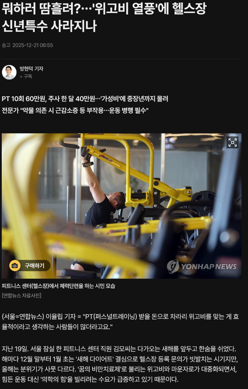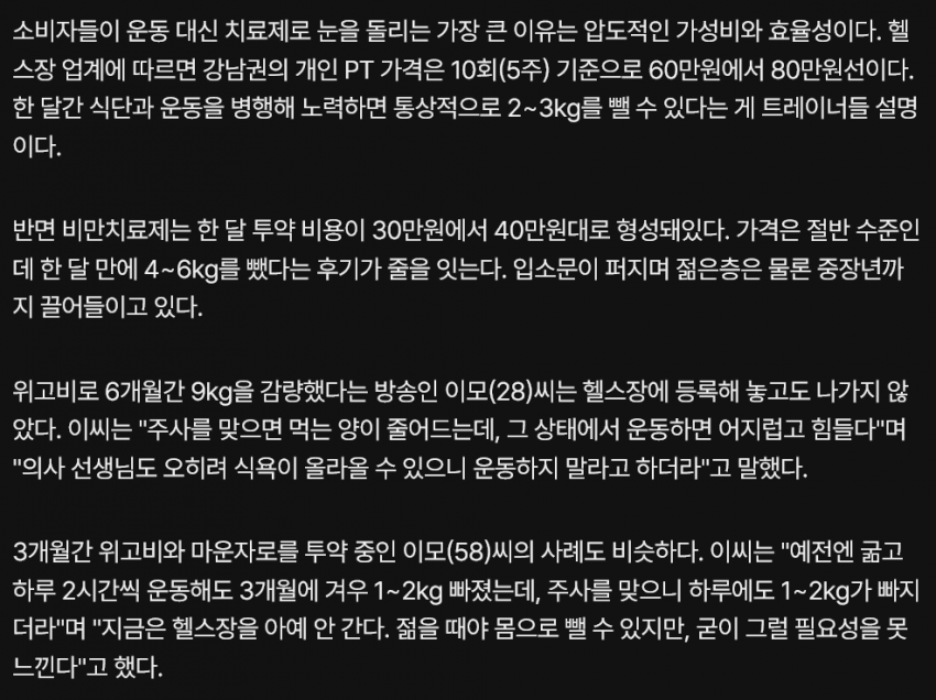 주사 딸깍하면 살이 쭉 빠지는데 굳이 헬스장 갈 필요를 못느낀다고 함
