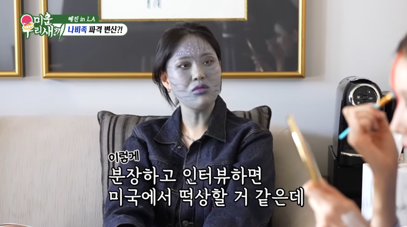 아바타 분장하고 인터뷰 하는 거 처음이라고ㅋㅋ