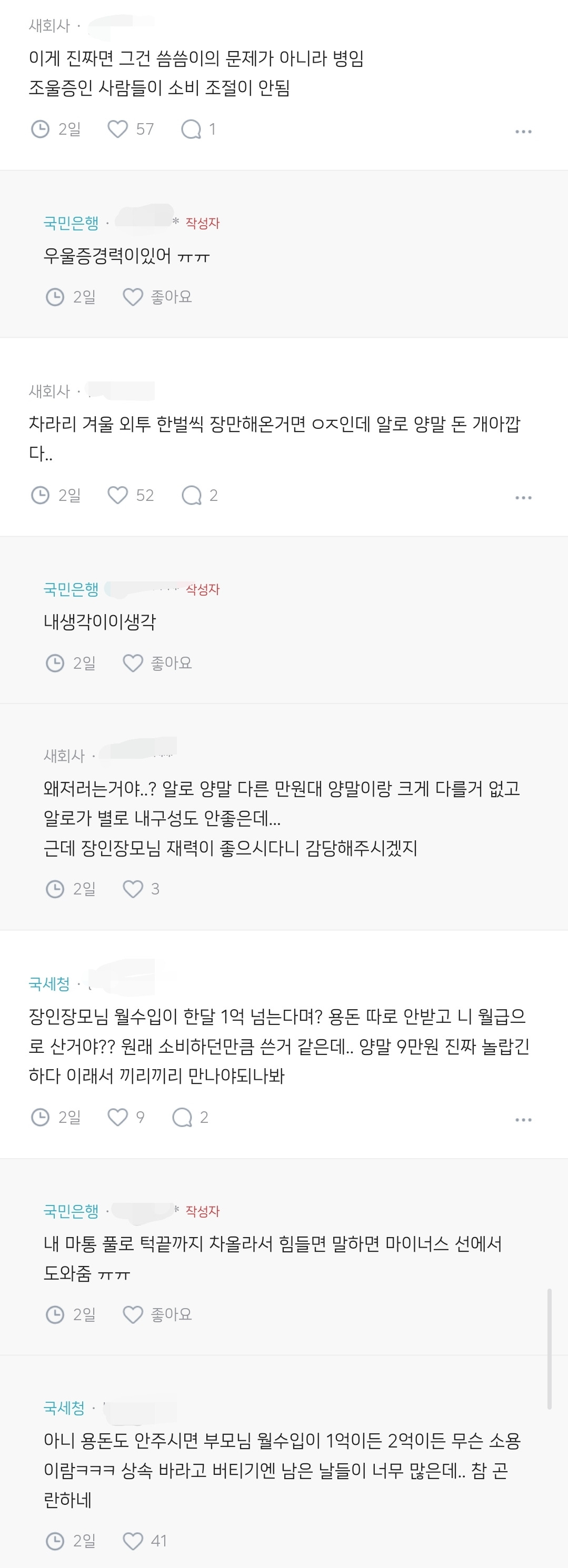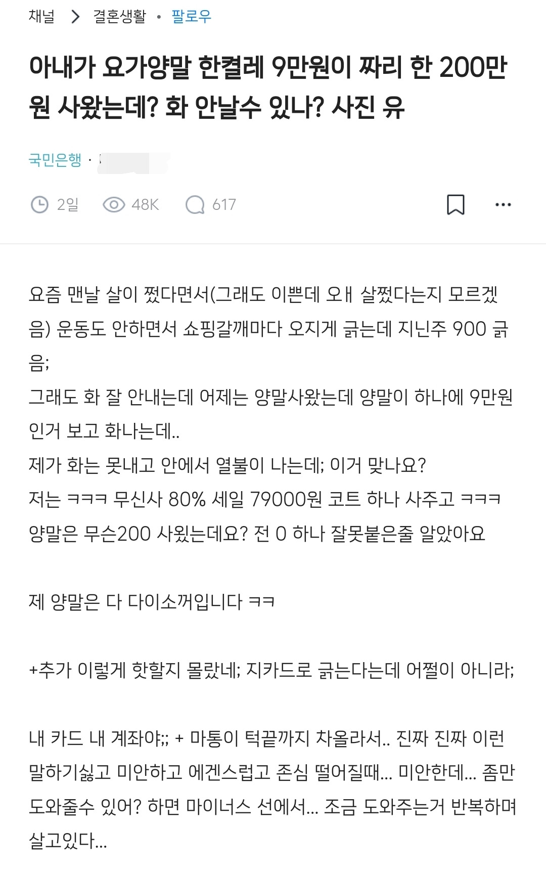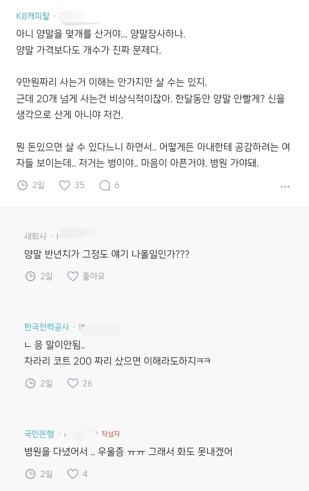 [흥미돋]양말 200만원치 사 왔다는 아내 작성자Sunmoonstar02|작성시간25.12.24|조회수93,711 목록 댓글 179 글자크기 작게가 글자크기 크게가 출처: https://theqoo.net/square/4038769357더쿠 - 양말 200만원치 사 왔다는 아내여기를 눌러 링크를 확인하세요theqoo.net 다음검색 현재 게시글 추가 기능 열기 북마크 공유하기 신고 센터로 신고 댓글 댓글 179 댓글쓰기 답글쓰기 댓글 리스트 작성자가나디와고냐니 | 작성시간 25.12.25 죠 작성자느개비 맥도날드캐챱도둑 | 작성시간 25.12.25 남자어 작성자동글뎅그르르 | 작성시간 25.12.25 소비를 이상하게 하긴 하네.. 근데 빌붙어 산다니 뭐 ㅋㅋ.. 작성자뉴뉴냐냐시계 | 작성시간 25.12.25 으휴 ㅋㅋ 작성자호랑이귀여워 | 작성시간 26.01.04 남자들 인생 개꿀이네 댓글 전체보기