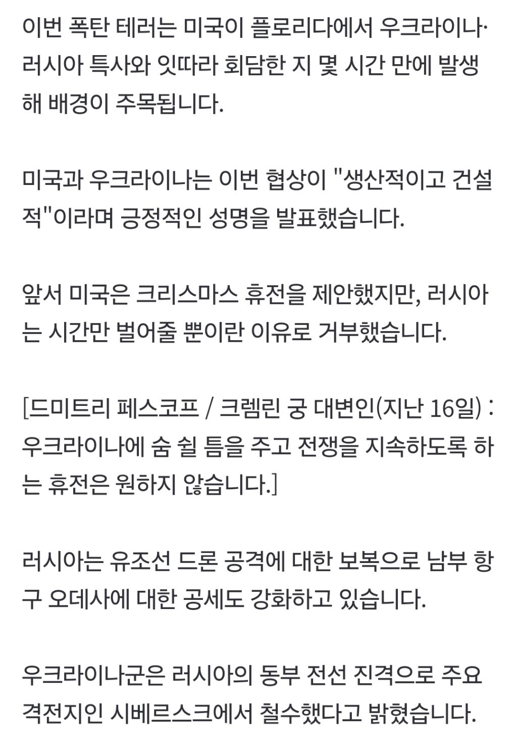 [여시뉴스데스크]물 건너간 '크리스마스 휴전'...폭탄 테러에 대규모 공습 격화 작성자마루와강쥐|작성시간25.12.24|조회수13,095 목록 댓글 7 글자크기 작게가 글자크기 크게가 출처: https://naver.me/GJ5zD4Yf물 건너간 '크리스마스 휴전'...폭탄 테러에 대규모 공습 격화크리스마스 휴전을 목표로 했던 미국 주도의 평화안이 교착 상태에 빠진 가운데, 러시아와 우크라이나의 충돌이 격화하는 모양새입니다. 모스크바에서 한복판에서 폭탄 테러로 군 장성이 숨지n.news.naver.com 다음검색 현재 게시글 추가 기능 열기 북마크 공유하기 신고 센터로 신고 댓글 댓글 7 댓글쓰기 답글쓰기 댓글 리스트 작성자람지썬더ㅓ | 작성시간 25.12.24 21세기에 20세기 초반 같은 전쟁이라니...그만해ㅠ 작성자나나좋아 | 작성시간 25.12.24 그만좀해 진짜.. 작성자귀여운또리 | 작성시간 25.12.24 아직도 하냐 ㅅㅂ 누굴위한 전쟁임.. 작성자디스쿨페나도외웠다 | 작성시간 25.12.24 세계대전 때도 크리스마스엔 휴전했다던데 어째 지금이 더 야만적이야 작성자구구크러스터사랑 | 작성시간 25.12.24 미친 것들 댓글 전체보기