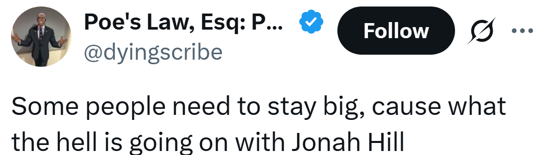[흥미돋]몰라보게 달라진 근황으로 트위터에서 화제인 해외 배우 작성자귤토끼이|작성시간25.12.24|조회수18,961 목록 댓글 32 글자크기 작게가 글자크기 크게가 출처: https://theqoo.net/square/4038856619 https://x.com/dyingscribe/status/2003485367417340082?s=20 https://x.com/softkale/status/2003536089412448532?s=20 조나 힐 신작 영화 촬영 중인 사진이라고 함 다음검색 현재 게시글 추가 기능 열기 북마크 공유하기 신고 센터로 신고 댓글 댓글 32 댓글쓰기 답글쓰기 댓글 리스트 작성자욕쟁이 | 작성시간 25.12.24 와 누군지 모르는데 진짜 몰라보겠음(?) 작성자Bamby | 작성시간 25.12.24 오른쪽사진 귀가 어떻게된거지?? 작성자이용민아닌가요 | 작성시간 25.12.24 마운자로 백퍼 작성자이용민아닌가요 | 작성시간 25.12.24 운동 1도 안하고 초절식하는 몸매임 저 특유의 붓기없고 볼륨빠진 풍선st 작성자뜌어 | 작성시간 25.12.30 그래도 건강해졋겠네ㅜ 댓글 전체보기