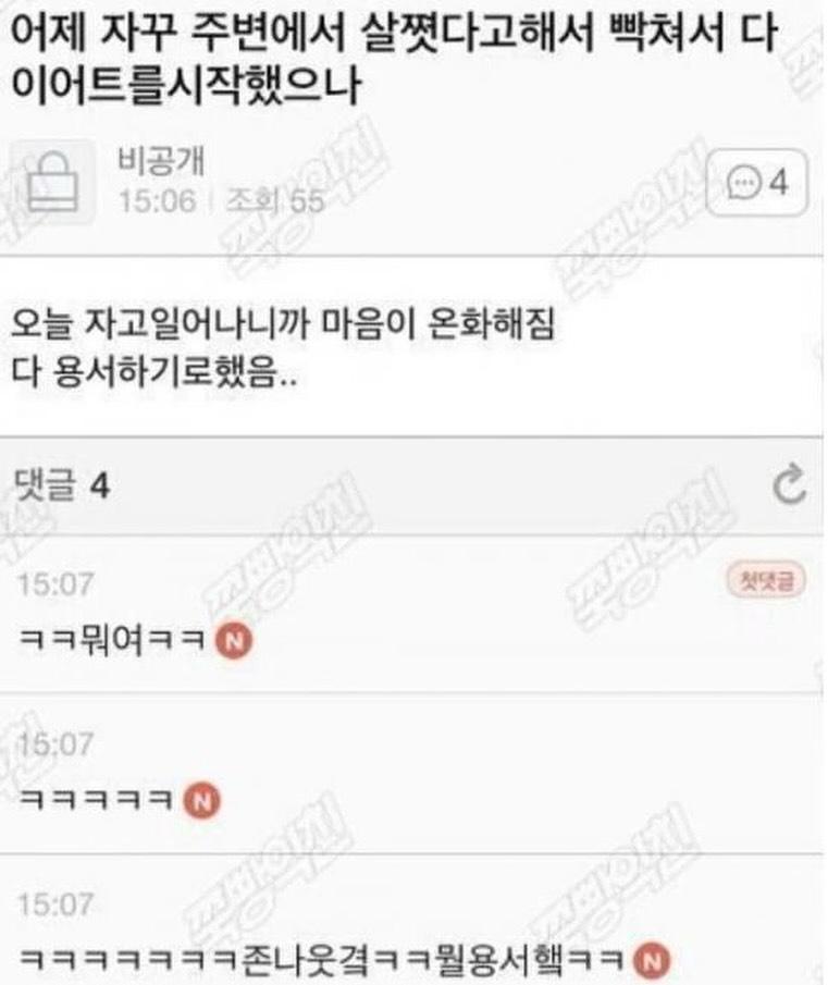 [배꼽의행방]어제 자꾸 주변에서 살쪗다고해서 빡쳐서 다이어트 작성자이재는이재명|작성시간25.12.24|조회수16,841 목록 댓글 5 글자크기 작게가 글자크기 크게가 출처: 여성시대 (이재는이재명)JB다이어트..를... 시작했으나다 용서하기로 했음크리스마스 이브 마음가짐세계평화온화물가안정온화 다음검색 현재 게시글 추가 기능 열기 북마크 공유하기 신고 센터로 신고 댓글 댓글 5 댓글쓰기 답글쓰기 댓글 리스트 작성자그건 아마 느그 잘못일 거야 | 작성시간 25.12.24 ㅋㅋㅋㅋㅋㅋ 작성자나2026대박난대!! | 작성시간 25.12.24 귀여워 ㅋㅋㅋㅋㅋㅋㅋㅋㅋ 작성자zhejwkr | 작성시간 25.12.24 이브 기념~ 작성자감사한일생각하기 | 작성시간 25.12.24 ㅋㅋㅋㅋㅋ진짜 귀엽다 작성자Valancy Stirling | 작성시간 25.12.24 ㅋㅋㅋㅋㅋㅋㅋ갸웃겨 댓글 전체보기