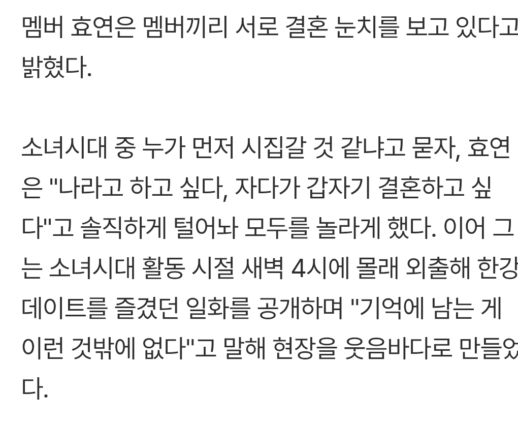 작성자외로운늑대 작성시간 25.12.24 소시도 이제 결혼 질문 받는구나... 세월이 빠르다