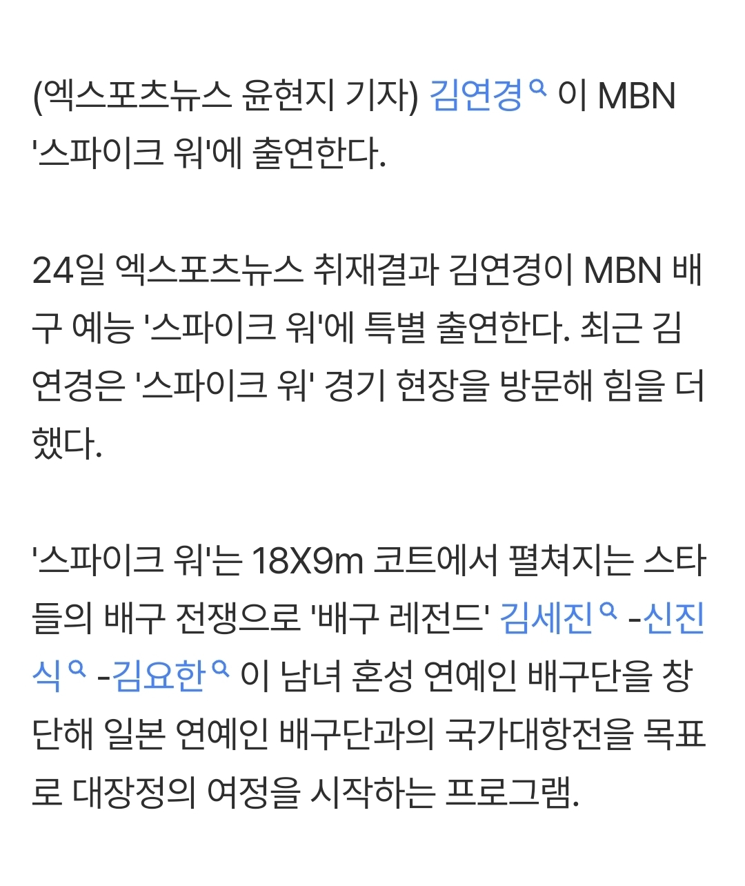 [여시뉴스데스크][단독] '신인 감독' 김연경, 배구 예능 섭렵…'스파이크 워' 특별 출연 작성자엔조이작전|작성시간25.12.24|조회수4,377 목록 댓글 6 글자크기 작게가 글자크기 크게가 출처: https://naver.me/GGCYQEB1[단독] '신인 감독' 김연경, 배구 예능 섭렵…'스파이크 워' 특별 출연여기를 눌러 링크를 확인하세요m.entertain.naver.com 다음검색 현재 게시글 추가 기능 열기 북마크 공유하기 신고 센터로 신고 댓글 댓글 6 댓글쓰기 답글쓰기 댓글 리스트 작성자벚꽃엔딩 | 작성시간 25.12.24 난 이언니가 배구에 얼마나 미친사람인지 오억개 일화를 댈수있는데 이걸로 오억한개임 작성자유료도로당 | 작성시간 25.12.24 내가 살면서 갓연경만큼 한 분야에 진심일 수가 있을까 작성자감자밭대주주 | 작성시간 25.12.24 짇짜 개재밋더라 신인감독 김연경 작성자수플레치즈케이크 | 작성시간 25.12.24 배친자 작성자summer.cake | 작성시간 25.12.24 그럼 나 또 봐여지... 댓글 전체보기