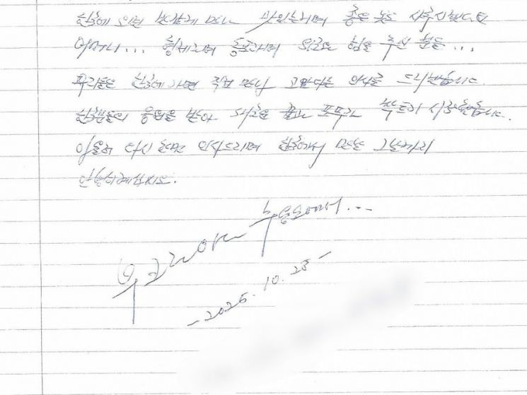 편지에는 두 사람의 서명도 담겨 있는 것으로 전해졌다.
