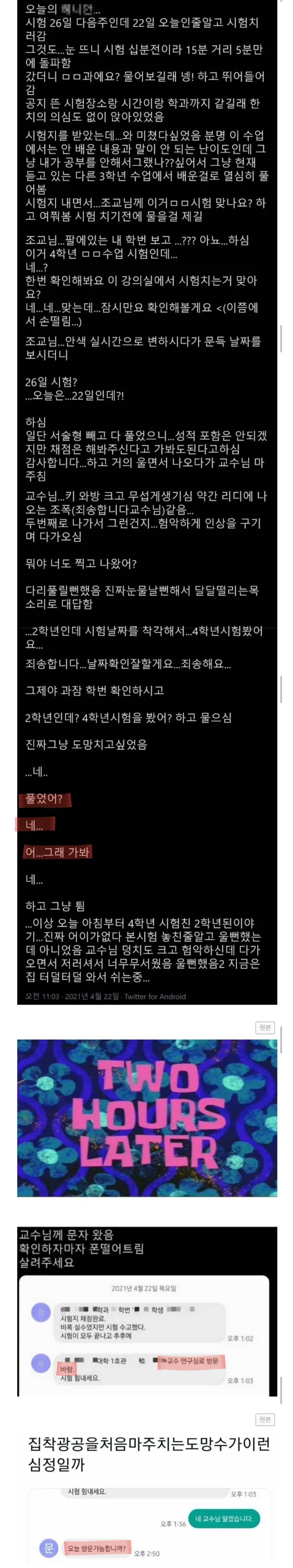 [스크랩] [흥미돋]시험날짜 착각했다가 진짜 망한 대학생 작성자퍼실|작성시간25.12.24|조회수40,700 목록 댓글 53 글자크기 작게가 글자크기 크게가 출처: https://theqoo.net/square/3925065479?page=4 다음검색 스크랩 원문 : *여성시대* 차분한 20대들의 알흠다운 공간 현재 게시글 추가 기능 열기 북마크 공유하기 신고 센터로 신고 댓글 댓글 53 댓글쓰기 답글쓰기 댓글 리스트 작성자빙글빙글우산 | 작성시간 25.12.25 말투 진짴ㅋㅋㅋ 이미지 확대 답댓글 작성자미국주식무새 | 작성시간 25.12.25 헐 저사람이야? 이카톡은처음봄 답댓글 작성자빙글빙글우산 | 작성시간 25.12.25 미국주식무새 엉ㅋㅋㅋ 답댓글 작성자미국주식무새 | 작성시간 25.12.25 빙글빙글우산 오신기해 ㅋㅋㅋ후기는처음본다 작성자ICDIWABH | 작성시간 25.12.25 잘가게 댓글 전체보기
