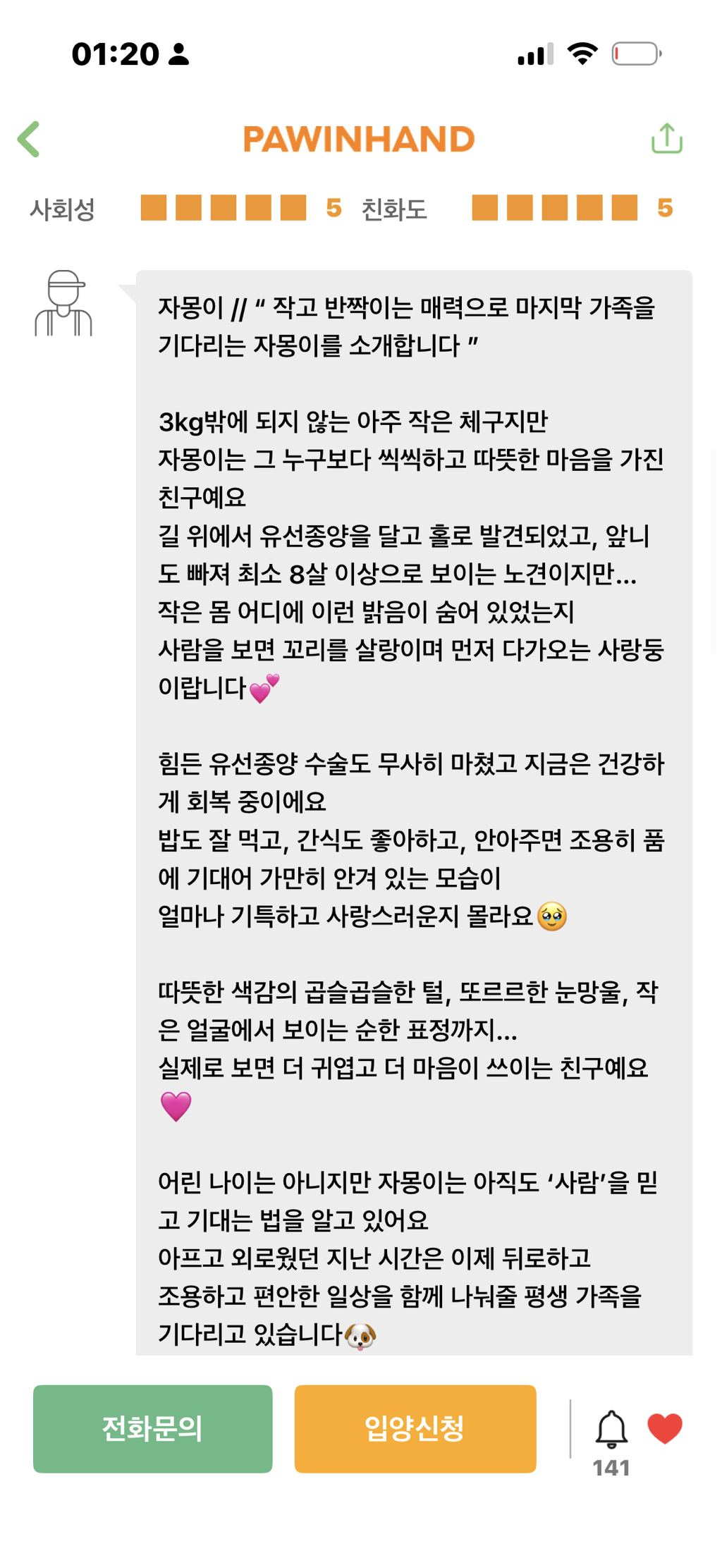 물론 앞니도 빠진 추정 8살 이상의 노견이지만 난 노견인 아이도 케어만 잘해주면 정말 건강하게 같이 행복할 수 있다고 생각하거든!