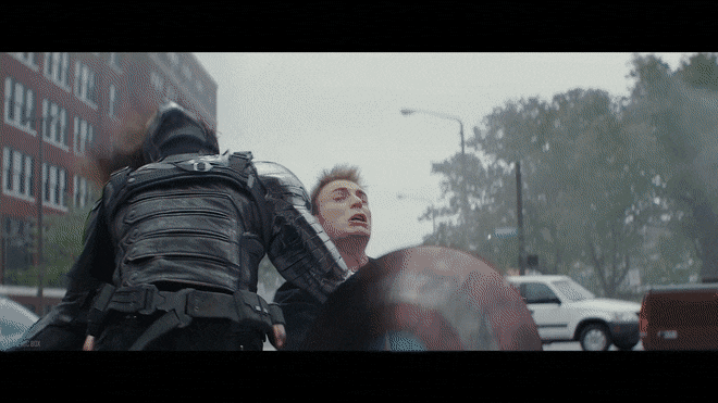 캡아가 일반인과 다른 신체능력+전투기술 보유하고 있다는 걸 한 씬으로 보여줌. 훈련된 최정예 요원들과 1대 다수로 붙어도 이김