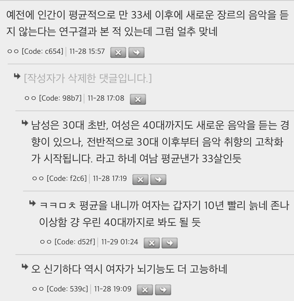 작성자한로로 작성시간 25.12.25 아뭐야 33살부터 새로운 음악 안 듣는다는 거 나 믿고 ㅈㄴ 조급했는데 걍 자댕들이 보수적인 거네