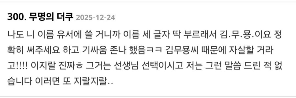 작성자진주고추크림치즈머핀 작성시간 25.12.26 멍청한건 죄야 존나 상대방을 미치게 하는데도 죄가 아니라는 인간 있으면 개패버릴거임