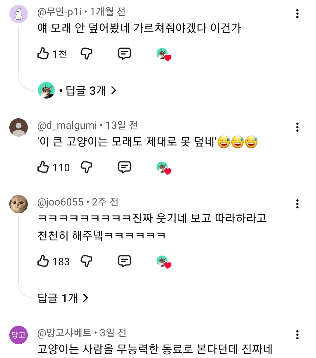 [흥미돋]모래 덮는데 훈수두는 고양이 작성자Mia Goth|작성시간25.12.25|조회수34,265 목록 댓글 53 글자크기 작게가 글자크기 크게가 출처: 여성시대 Mia Gothhttps://youtube.com/shorts/adeSuQV258A?si=TA7OLSES17Bjq4ws미방귀여워 다음검색 현재 게시글 추가 기능 열기 북마크 공유하기 신고 센터로 신고 댓글 댓글 53 댓글쓰기 답글쓰기 댓글 리스트 작성자10:40 | 작성시간 25.12.25 사랑해♡ 작성자고양이꼬순내테라피 | 작성시간 25.12.25 ㅋㅋㅋㅋㅋ너무귀여우 고양아ㅠㅠㅠㅠ 작성자Mooineno | 작성시간 25.12.25 꽉잡고… 촤! ㅠㅠㅠㅠㅠㅠ 작성자냐옹치킨 | 작성시간 25.12.25 그치 보통은 한번이 아니라 챡챡챡하는데 한번 챡하고 끝이네ㅋㅋㅋㅋㅋㅋㅋ진짜 큰고양이로 보나봐 작성자와와헴ㄷㄷ;; | 작성시간 25.12.31 촤 ㅠㅠㅠㅠㅠㅠ 댓글 전체보기