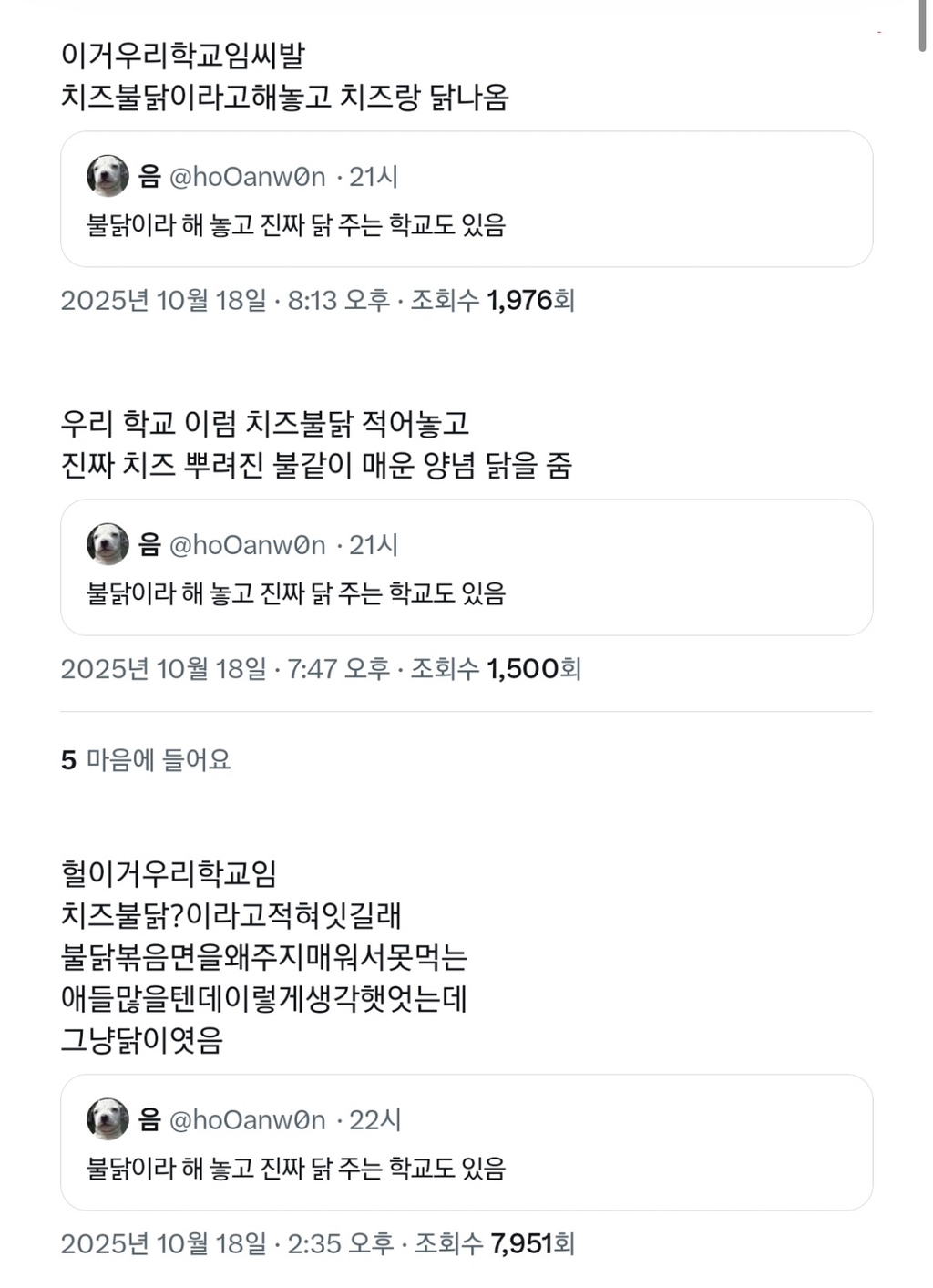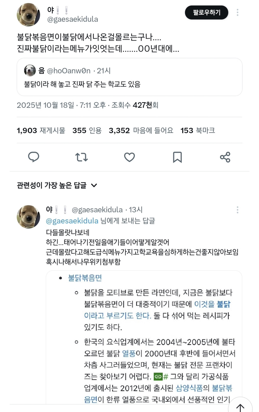 [흥미돋]전혀 생각도 못해본 세대차이 주제.x 작성자영원히 우리는|작성시간25.12.25|조회수41,262 목록 댓글 49 글자크기 작게가 글자크기 크게가 출처: https://theqoo.net/square/4040470869술집가면 이런 안주가 있었뜸..대략 2010년대 중반까진 꽤 본듯 다음검색 현재 게시글 추가 기능 열기 북마크 공유하기 신고 센터로 신고 댓글 댓글 49 댓글쓰기 답글쓰기 댓글 리스트 작성자이번주왜이렇게길죠 | 작성시간 25.12.26 치즈불닭을 모른다고...?!? 진짜야..? 작성자까꾸루 | 작성시간 25.12.26 불닭이 그 불닭이란다.. 작성자belvv | 작성시간 25.12.26 너네가말하는불닭은 면 이란다.. 치즈불닭이 닭이고… 작성자헤에에엑 | 작성시간 25.12.26 애들아 레비 불닭 보고와 작성자kimwon.piI | 작성시간 25.12.26 홍초불닭 이런거 모르냐고 ,, 흑흑 댓글 전체보기