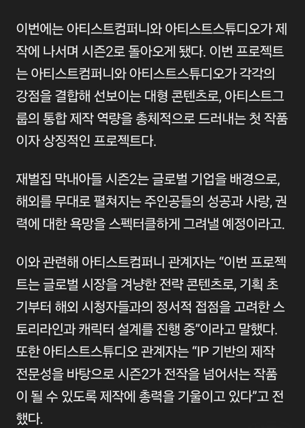 작성자사랑으로서느끼기 작성시간 25.12.26 뭔 ㅅㅂ;;; 진양철 죽고 드라마도 거기서부터 죽어버렸는디... 후반부는 진짜 억지로 봤는데 시즌 2라니