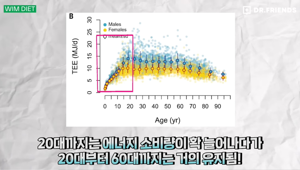 기초대사량은 60대가 넘어야 떨어지기 시작함.