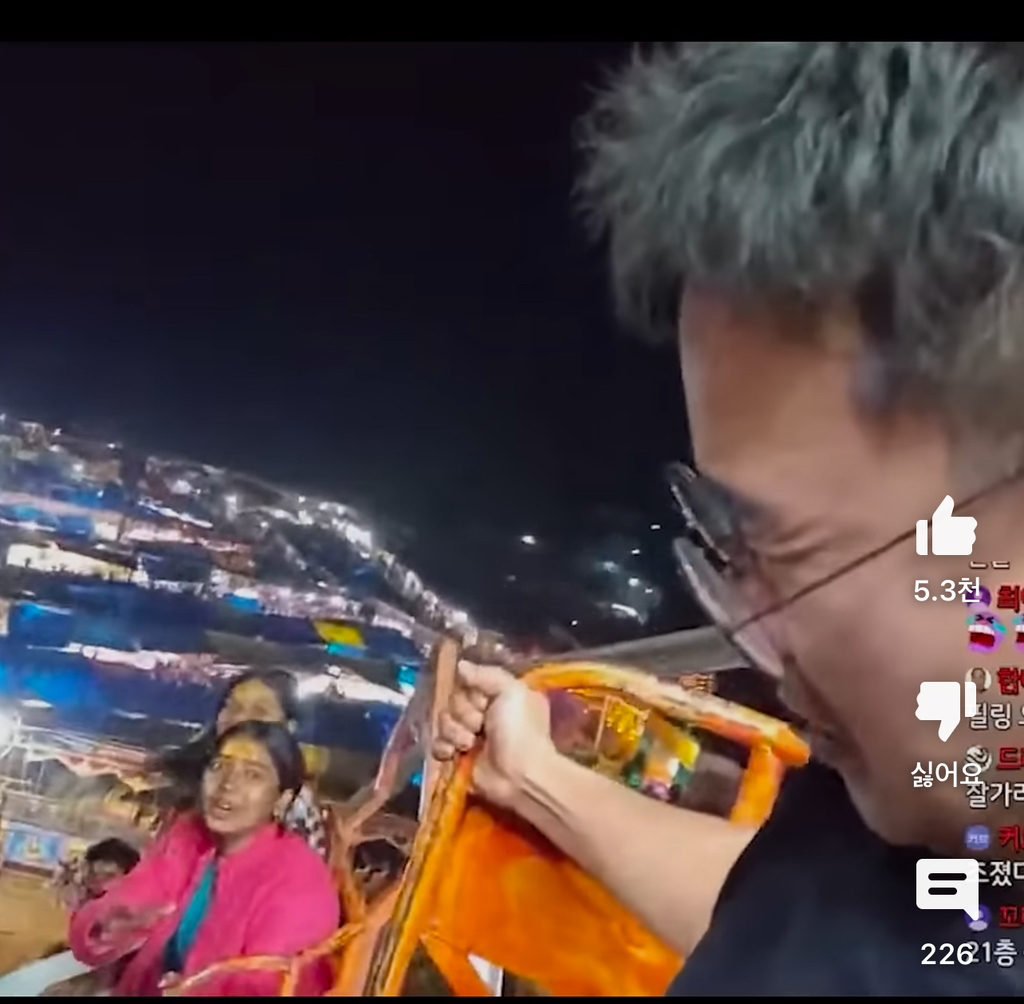 이 유투버가 무서워하니까 같이 탄 인도인이랑