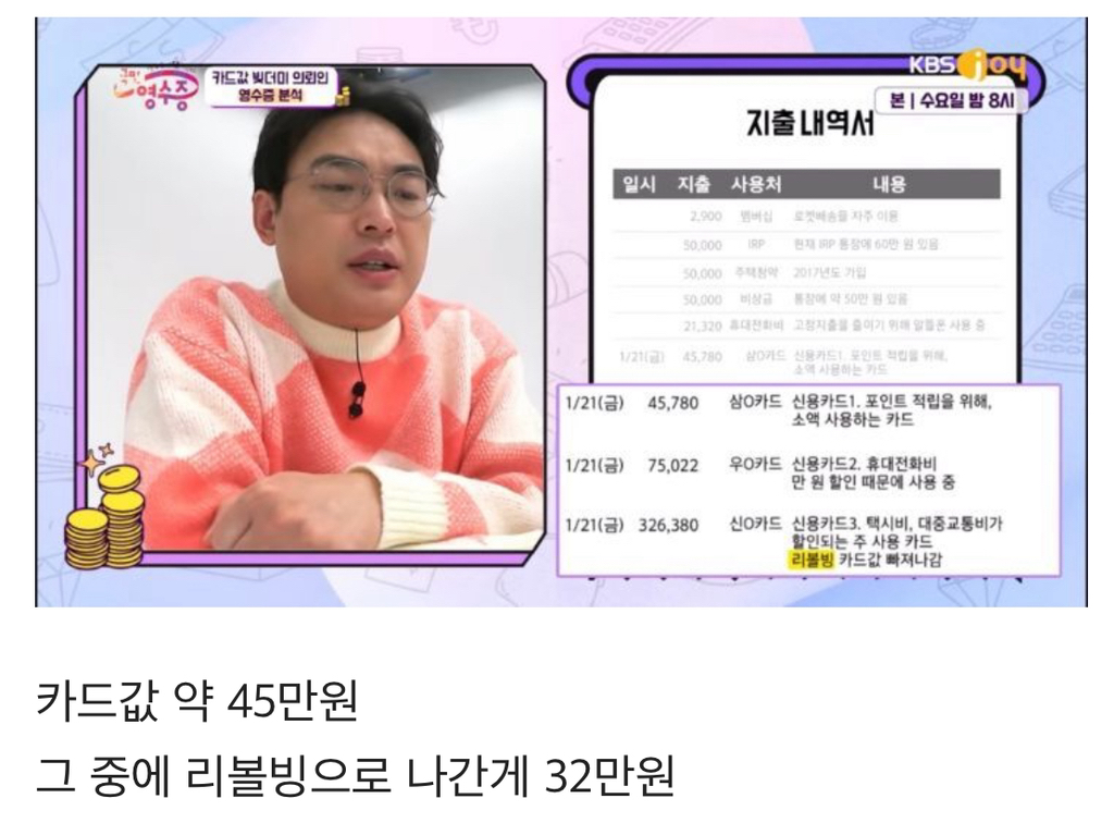 [스크랩] [기타]명품 안사는데도 돈이 안모이는 월급 250만원 직장인 작성자첟허|작성시간25.12.26|조회수72,400 목록 댓글 26 글자크기 작게가 글자크기 크게가 출처: https://youtu.be/hfUq5Rpm5xw 다음검색 스크랩 원문 : *여성시대* 차분한 20대들의 알흠다운 공간 현재 게시글 추가 기능 열기 북마크 공유하기 신고 센터로 신고 댓글 댓글 26 댓글쓰기 답글쓰기 댓글 리스트 작성자야이야이야이노무자슥 | 작성시간 25.12.26 리볼빙때메 카드값은 10%만 갚아서 저만큼인거고 ..한달 카드사용횟수가 80회라는디.. 이미지 확대 작성자야이야이야이노무자슥 | 작성시간 25.12.26 이미지 확대 작성자2026.12.31 | 작성시간 25.12.26 결제를 하루 걸러 하네 작성자일본의 빠른 대지진을 기원합니다! | 작성시간 25.12.26 리볼빙? 노....차라리 월급 다쓰면 모를까 리볼빙은 노답임 작성자삼각김밥맛쿠키 | 작성시간 25.12.26 신카를 없애야.. 댓글 전체보기